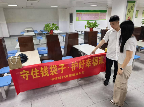 中信银行德清支行专门组织了宣传小组深入企业,通过在在企业会议室驻点宣讲、发放宣传折页、现场解答防范非法金融的常见问题等形式,邀请企业新市民群体共同了解防范非法金融活动,也受到企业的好评和认可。