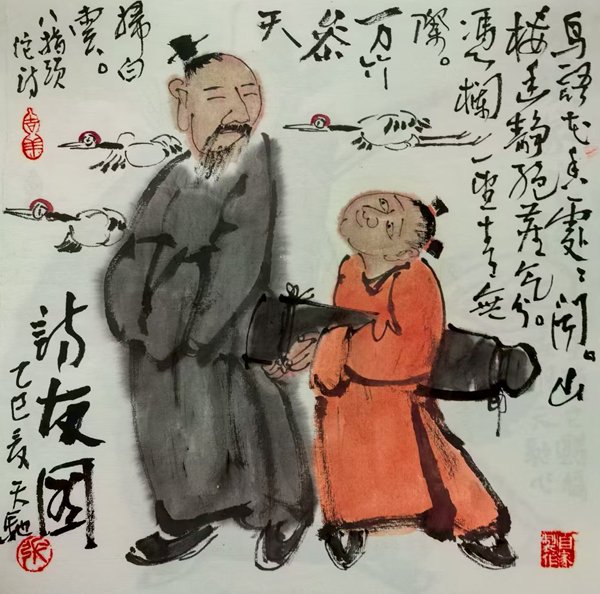 ![]() 和画家张龙聊往日时光 六月芳菲 2016年的冬日,有幸和画家张龙先生相约在荣宝斋咖啡书屋,一起聊聊画画的那些事儿。张龙,字天驰,安徽泗县人,现定居北京。中国美协会员,北京美协会员,北京西城美协理事、人物画专业艺术委员会委员,北京大学校友书画协会外联部副部长,刘大为工作室画家、苗再新工作室画家。师从周思聪、刘文西、刘大为、苗再新。是近年来迅速崛起的中青年人物画家,被业内喻为获奖专业户。 六月芳菲:张老师,看到你的画,总是让人有莫名的感动,无论作品形式和内容都非常亲民接地气,满满书卷气而无江湖气。你一定出自书香门第家庭,从小受到良好的艺术熏陶。 张龙:谢谢夸奖。我自己感觉我画的实在是不好,还在摸索实践过程中。让你失望了,我并没有出身在书香门第家庭。恰恰相反,因我母亲是下放知青,我出生在农村,在农村生活了十年。童年都是伴着牛羊、村舍、庄稼一起度过的。记得那时特别爱听大喇叭播放的评书《岳飞传》《杨家将》,每天傍晚,炊烟升起时,大家不约而同围在一起收听刘兰芳播讲的评书,近乎着迷,给童年带来了无限的快乐和幻想。哈哈,我现在还喜欢幻想,估计是那时落下的毛病。。后来,知青落实政策我家举家搬到县城,偶尔看到租住的房屋墙面上,不知谁涂鸦的《岳飞传》里的人物形象一下子吸引了我,不由自主地捡起粉笔头在墙上照着描画起来,从此再也没有停歇过。那时县城大街上有许多租看小人书的书摊,就每天放学去租看,拿出笔去临摹喜爱的人物形象。 ![]() 张龙珍藏的儿时临摹的小人书(一) ![]() 张龙珍藏的儿时临摹的小人书(二) 六月芳菲:临摹小人书为你打开了艺术的大门。 张龙:是的。通过临摹小人书,慢慢的掌握了一点人物造型,当别人夸画的像时,兴趣就会更加强烈。现在经常有人说好孩子是夸出来的,我想,正因为少年时期经常被同学、家长、老师夸奖,兴趣就会更大,画就会画的更投入了。后来小人书已经远远不能满足自己的求知欲后,就慢慢的开始临摹一些画谱、图片之类的资料,也开始注意欣赏一些画家的画集和文章。小学的美术老师也发现了我,吸收我为美术小组成员,经常参加学校的美术活动。呵呵,那时候都是不收钱的,老师也认真教,在老师的指导下开始参加各种美术比赛。 ![]() 张龙12岁便获全国成人组书画比赛三等奖 六月芳菲:照这样画下去,你一定能考上专业美术院校。 张龙:上初中的时候我也是这么想的,只是事物都在变幻中。有一次,我的同学要报考国家办的戏曲艺术表演班,老家县城有一个考点,让我陪着去,没想到主考老师发现了我,结果一试二试我考过了,同学落榜了。从此,我离开了家到别的城市学戏曲表演专业了。手眼身法步、唱念做打功,样样从零开始,二年后分配到国营戏曲团体,只是内心深处只想着画画,没有很好的投入到戏曲表业事业。后来又弃舞从戎,入伍到了北京武警部队。都说部队是大学校大熔炉,这可不假,当兵十六年,在各级岗位摸爬滚打,弹指一瞬间,青春已逝。 ![]() 88年张龙参加戏曲汇报演出(前排左二) ![]() 90年代张龙自编自导自演节目照(一) ![]() 90年代张龙自编自导自演节目照(二) 六月芳菲:您如何理解“艺术是相通的”? 张龙:不管是以前我学习的梅兰芳体系、斯坦尼斯拉夫体系还是架上绘画,虽说艺术门类不同,但各个行业老师都提出了多向姊妹艺术学习的观点。我深有体会也获益匪浅。比方说在戏剧舞台上,群众演员很多,只要主角出场,不管灯光、伴奏、群众演员都是铺垫,主角漂亮的亮相,一下子抓住了观众的心。我们在创作大场面的人物作品也是一样,一定有主有辅,而且主要的一定是精彩的。又比如我平时爱唱歌一样,同样的通俗歌曲,有的编曲就吸收一些民族的、欧美的、摇滚的等等,就会有特色,就会和时代扣得很紧。画画也一样,有的作品我也会吸收传统的、西方的及生活中捕捉的特色融入到画面中。 ![]() 90年新兵班的战友(前排右二) ![]() 与战友们(前排右一) ![]() 青年时期的张龙,既是带兵人又是文艺骨干 六月芳菲:作为中国美协会员,给人的感觉应该是专门美术院校出来的才能画的如此专业和有水准。你似乎恰恰是自学的,你成功的经验是什么? 张龙:我没什么经验之谈,只有经历。我个人觉得,学习的形式不重要,走对路子最重要。我很幸运,88年我只身一人到北京找到了周思聪老师,后来入伍到北京,经常去王府井帅府园她的家中请教。大家知道,周先生是当代最具影响的女画家,从来不摆架子,每次都认真点评我的习作,并一遍一遍画给我看。断断续续有四年时间,那时候我太年轻不懂事,连一斤水果都想不到给老师买过。。。她去世很多年了,我现在想起来就觉得后悔。这些年,我作为周思聪、刘文西、刘大为、苗再新的学生,我对人物创作有了新的认识和理解。 ![]() 周思聪老师92年送给张龙的作品和签名画册 六月芳菲:在部队和之后转业到地方,你作为行政干部如何处理好工作和绘画的关系? 张龙:现在微信时代无秘密可言了(笑)。因工作原因我经历过很多单位,岗位大都是行政管理岗位,事务繁杂,工作时间没精力画画。以前单位的同事很少有人知道我会画画。现在就不行了,在微信圈上谁都能看到了。这么多年来,我一直有个原则,工作是工作,画画是画画,上班期间就是竭力把工作干好。画画主要是工作之余来进行。