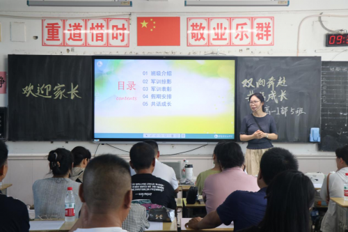 本次家长会各班创新形式、注重实效,精心设置了五个特色环节。在班级文化建设展示环节,班主任通过多媒体课件,生动呈现了班级管理理念和高中学习特点;在军训风采展示环节,一张张记录着学生军训风采的照片,让家长们直观感受到孩子在烈日下的坚持与成长;在军训表彰环节,各班对在军训中表现突出的学生进行了表彰;在科学规划指导环节,班主任就