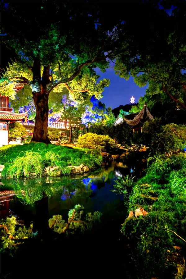 游客可跟随历史名人游览园林,参与互动情景剧,在动态叙事中感知文化传承。另一方面,依托《终极笔记》《司藤》等在惠山古镇取景的经典影视剧,打造实景化体验空间。结合NPC互动与光影装置,游客能沉浸式“穿越”进影视剧情,感受“戏里戏外皆是惠山”的独特魅力。多层次互动光影装置的打造,更提升了夜游趣味性。游客可与瑞兽主题灯组互动,在映山湖环线通过触摸、动作触发灯光动效,打破传统灯组只能观赏的局限。映山湖山水舞台提质升级后,上演大型山水实景舞蹈秀,通过三幕演出,用艺术形式展现繁花市集、百业兴旺,诠释盛世美好生活。