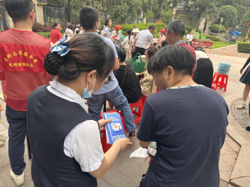 图注:在社区活动中,邮储银行佛山分行工作人员正在向居民耐心讲解手册内容,并解答日常金融疑问 |