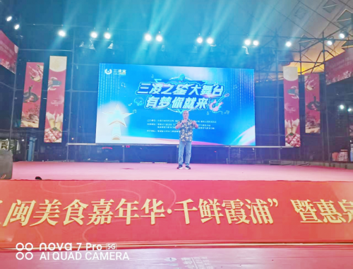 庆国庆迎中秋,三凌之星大舞台10月4日在千鲜霞浦九大馆广场举办三凌之星大舞台竞技赛。参加活动的嘉宾:福建三凌集团董事长郑建辉,原东南卫视首任台长、原福建电影制片厂厂长三凌之星大舞台总监制詹金灿、党建头条福建区域总监林豹、中国音乐家协会流行音乐学会会员,三凌之星艺术团团长江敬秋、三凌之星艺术团总导演王建文、秘书长陈玲玲、茂隆港总经理张庭华、霞浦网红歌手王佺盛等人出席。