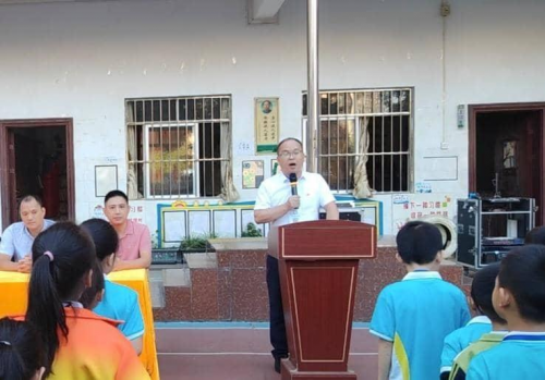 本次活动由广西民族文化产业发展研究会、南宁市非物质文化遗产保护协会联合发起,南宁市欣蓝天学校、广西五代同堂健康有限公司、南宁市康乐诊所、广西瑶医眼疾疗法传承基地共同承办,旨在响应国家青少年近视防控号召,推动非物质文化遗产走进校园、惠及当下。 升旗仪式拉开“护眼+传承”双重序幕 清晨的校园,国旗飘扬。活动在庄严的升旗仪式中启动。欣蓝天学校张桥校长在致辞中深情表示:“我们守护的不仅是孩子们的视力,更是一扇通往清晰未来的‘窗户’;我们传承的不仅是古老的技艺,更是一种守护健康的文化自信。”这番话,道出了学校在“智力与视力同步培养”上的坚定追求。