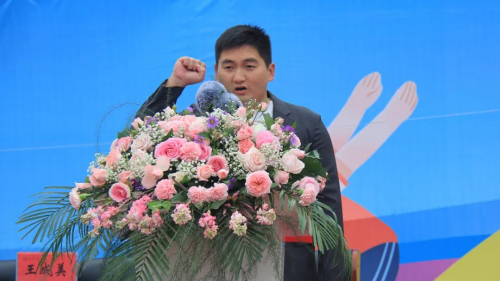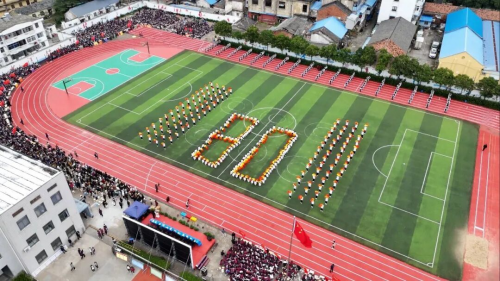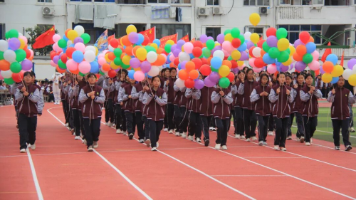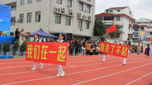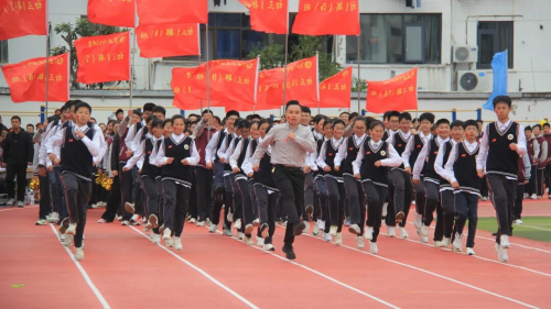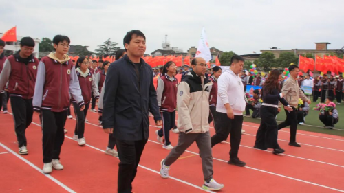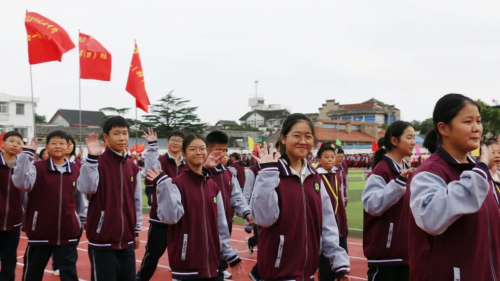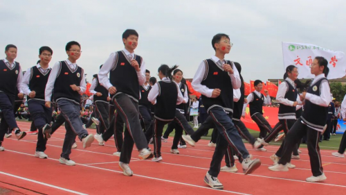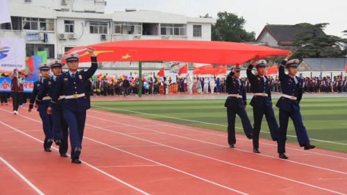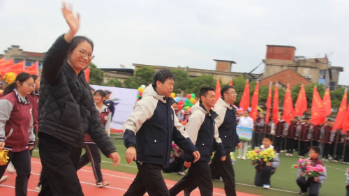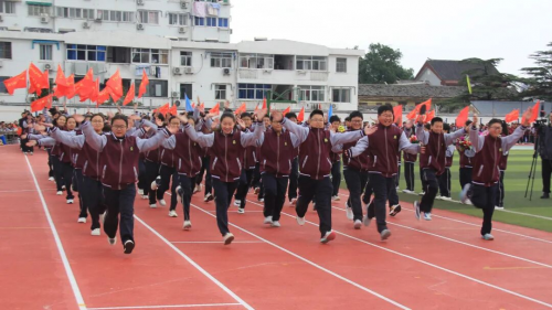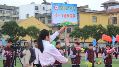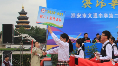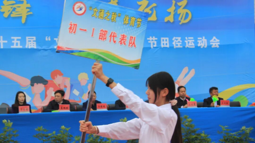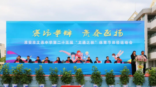在全场师生与家长的热切期待中,淮安区教体局工会主席王懿明郑重宣布:文通中学第25届“文通之秋”体育节田径运动会开幕!