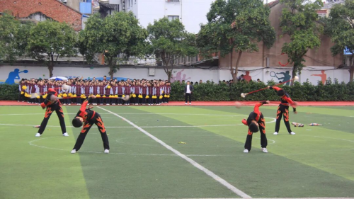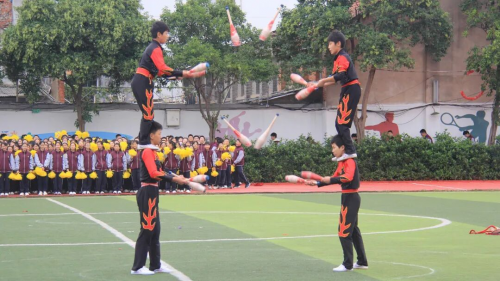 特色展演 燃校园激情 开幕式现场,特色展演轮番登场,将氛围推向高潮:团体操表演:初一Ⅰ部、初一Ⅱ部、初二Ⅰ部、初二Ⅱ部、初三年级依次亮相,整齐动作与灵动节奏相融,展现青春蓬勃朝气;杂技表演:精彩技艺惊艳全场,赢得阵阵掌声与欢呼声。