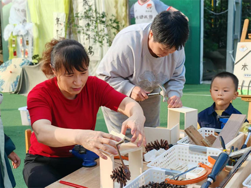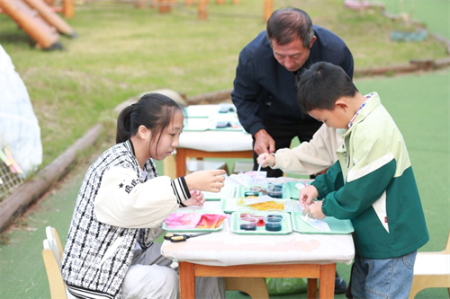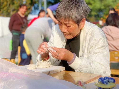 扎染、剪纸、陶艺、木工——老人们专注地沉浸在手工创作中。有人剪出寓意长寿的桃子,有人剪出灵动的蝴蝶结,陶艺转盘上,双手揉捏出的是童年的记忆与此刻的喜悦。一件件作品,虽不完美,却充满了温度与故事
