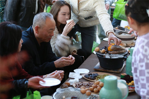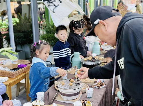 新方幼儿园精心布置了养生体验区与围炉煮茶区。菊花的清香在空气中弥漫,茶艺师的指尖流转着雅致与从容,围炉旁烤着金黄的玉米、香甜的红薯、饱满的花生与核桃,热气氤氲间,时光仿佛被慢煮成一首诗。
