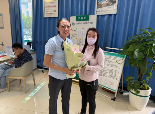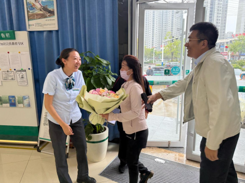 秋天的雨,细密而绵长,敲打着窗沿,带来丝丝凉意。9月23日上午,营业厅的门被轻轻推开,一位客户带着一身微凉的水汽走了进来,而她怀中,却紧紧护着一束灿烂的、带着温度的鲜花。 这束花是如此醒目,仿佛一道温暖的阳光,驱散了室外的阴霾。客户的目光在人群中寻找,最终定格在我们的内勤行长——赵鑫经理的身上。 “赵经理,多亏了你,不然我的损失可就大了!这束花,请您一定要收下!”