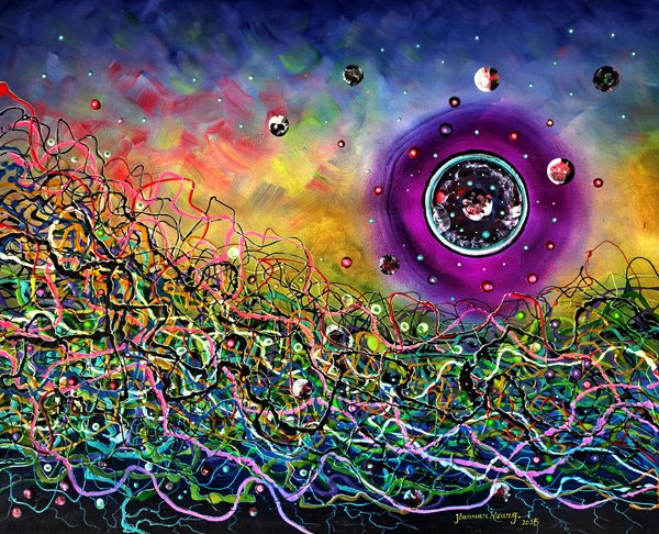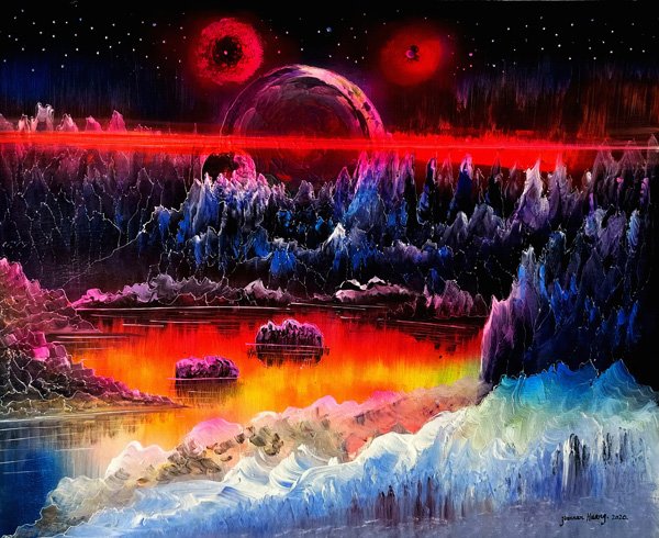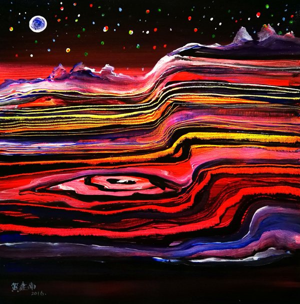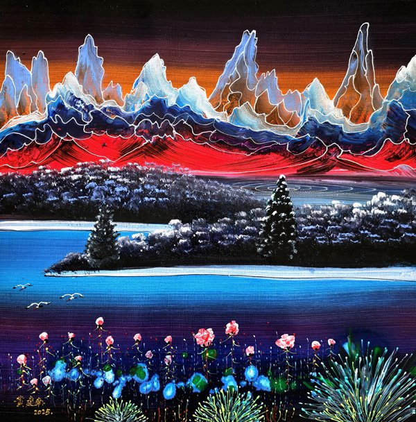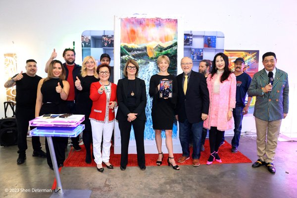 ![]() 图为估值高达1.025千万美元的《金谷银流》 ![]() 艺术界知名人士在《金谷银流》画作前留影并为该作品及黄建南点赞 ![]()