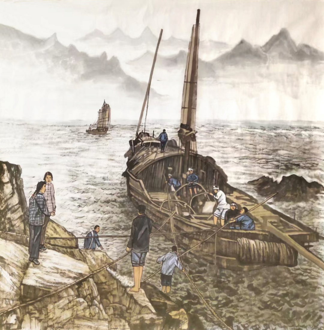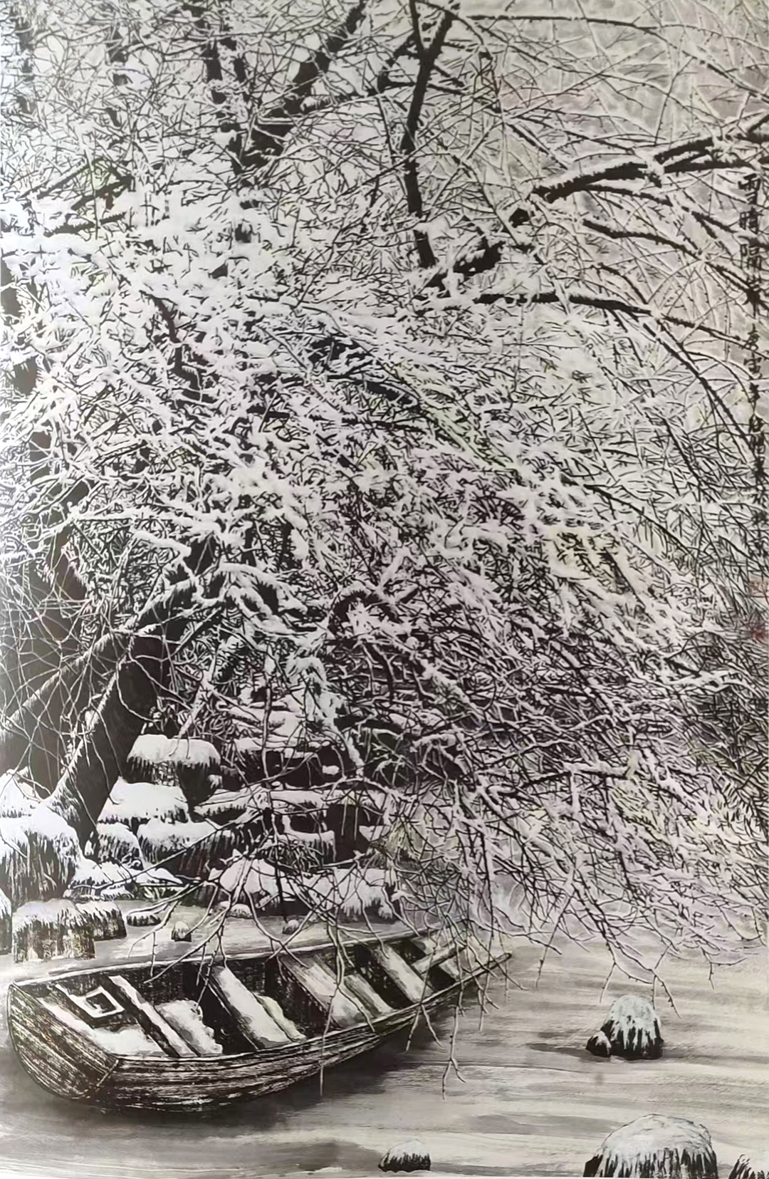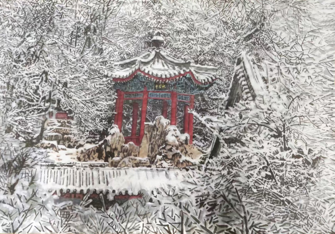 ![]() 《踏雪北海万宁亭》66×120cm 2024年 ![]() 《出海》96×96cm 2025年