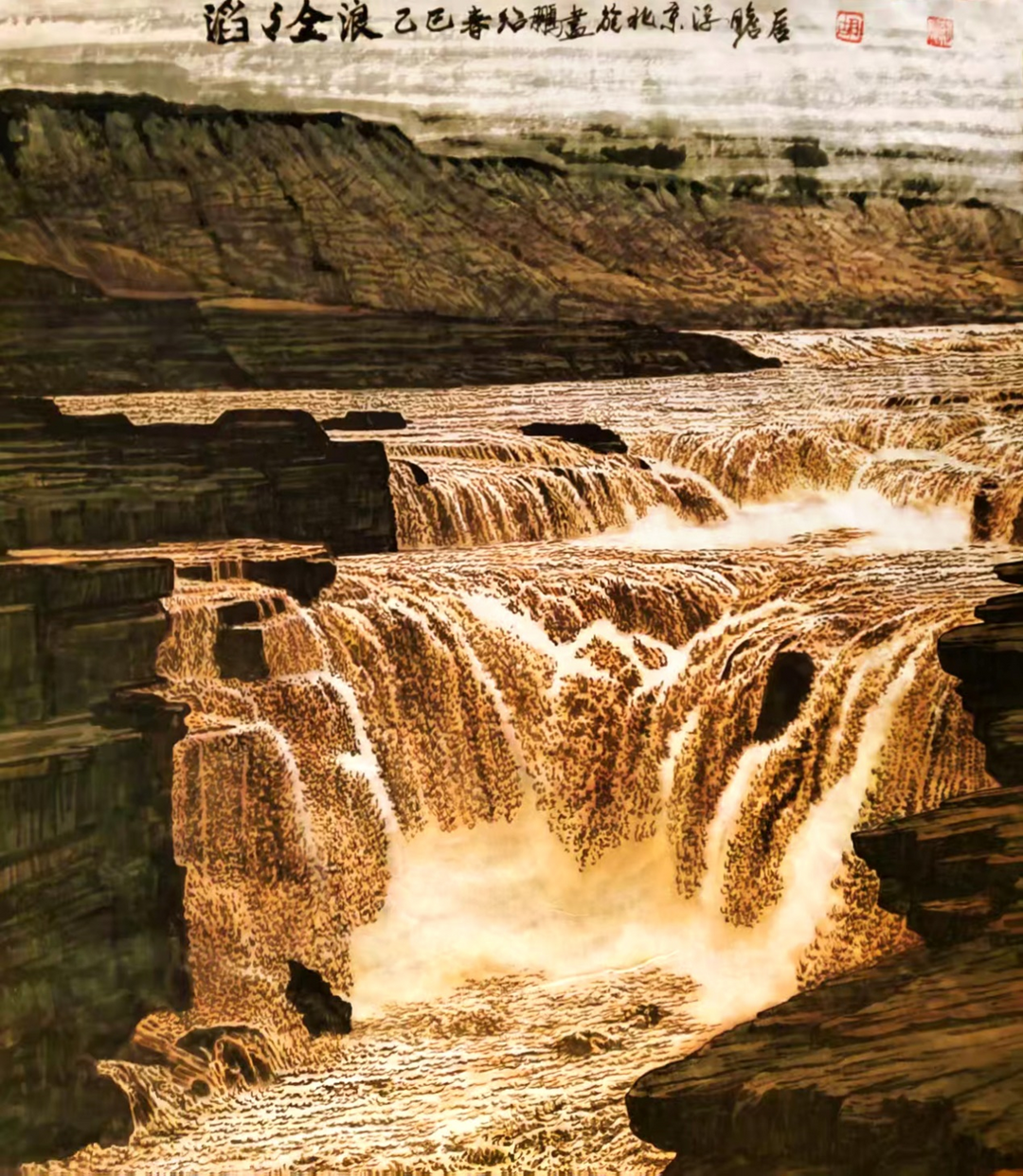 作为中国美术家协会会员、北京东方艺术研究院院长,胡绍鹏的艺术成就早已获得业界与收藏界的双重认可。作品多次入选全国性美展,应邀赴加拿大等多地举办画展,被海内外多家美术馆、博物馆及各界知名人士收藏。他不仅以画笔创作精品,更以笔墨传扬文化,发表《潘天寿、齐白石传统出新》等十余篇学术论文,在艺术理论与实践的交融中推动中国画的创新发展。在浮躁的商品社会中,他始终摆正金钱与艺术的关系,以勤奋与思考创造真善美的艺术,用作品践行着艺术家的社会责任。 ![]() 《黄河万里长》96×186cm 2018年