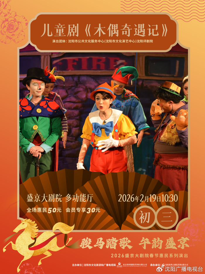 演出时间 2026年2月19日 大年初三 10:30 演出地点 盛京大剧院 多功能厅 剧情介绍: 主人公匹诺曹是老木匠杰佩托做的一个小木偶。