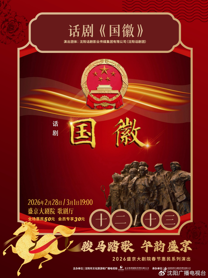 本场演出将分为三个篇章,我们将为您奉上沈阳歌舞团系列获奖作品的经典片段,共赴岁月经典、舞韵风华、时代新篇之约。 15 话剧《国徽》 正月十二——正月十三