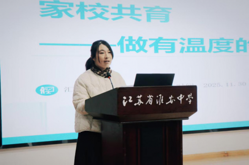 11月30日晚,江苏省淮安中学在校史馆一楼报告厅举行2025-2026学年度第一学期读书分享会之管理篇暨第一期班主任微论坛。活动以“润心赋能 家校同行”为主题,旨在提升教师的育人理念和管理水平。淮安市心理咨询师协会会长于洋,淮安中学党委书记、校长于敏等领导出席活动。全校班主任、行政干部以及学生发展指导中心教师参加活动。活动由学生工作处主任徐怀亮主持。 论坛上,高二1部彭珊珊老师从班主任的角度,围绕“家校共育:做有温度的班主任”主题,结合自己家访情况,从心态调整、家庭剖析、后续跟进等方面,分享了家校沟通的经验与感悟。