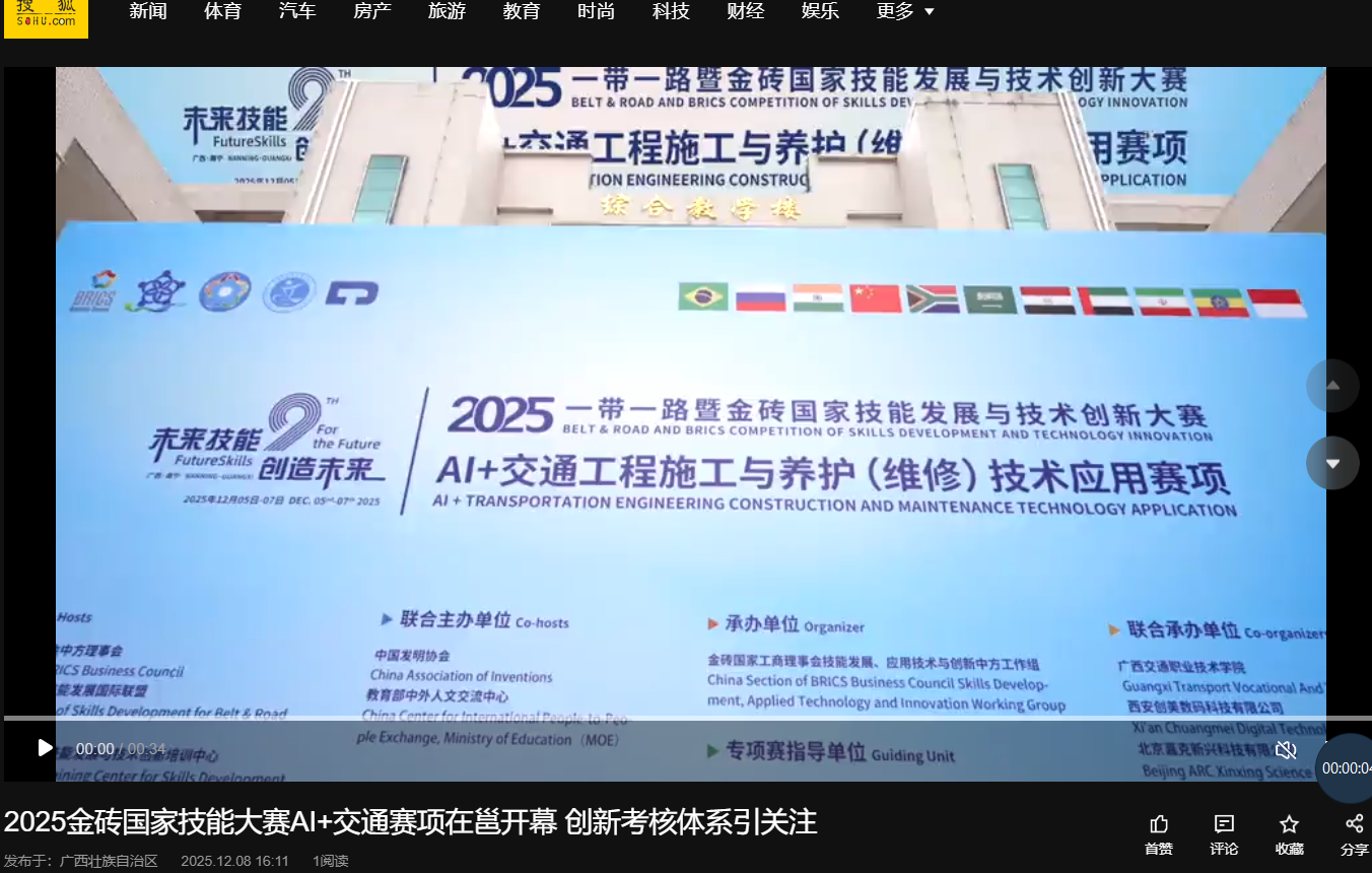据悉,2025一带一路暨金砖国家技能发展与技术创新大赛之AI+交通工程施工与养护(维修)技术应用赛项全国总决赛为期三天,涵盖道路、桥梁、隧道、铁路等多元工程体系,以及AI智能体应用技术考察选手智能应用能力及创新能力,创新构建“理论+虚拟仿真+ AI应用”的多层级考核体系。赛事的举办为交通工程智能化发展储备青年力量、凝聚创新智慧,为行业高质量发展注入持久动力。 作者:张春梅 通讯员:肖成明、严世涛