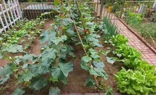 楼前小院四时葱,早晚身心巧手耕。 半垄韭芽割不尽,两畦豆角又催生。 春欣瓜果青茏碧,夏赏番茄紫透红。 莫道老来没事干,常接地气水风融。
