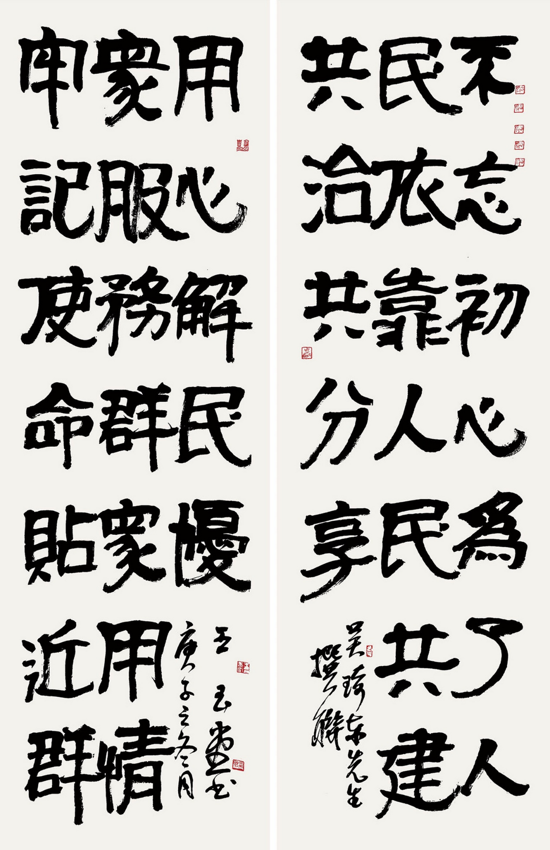 ![]() 【艺术简历】 王玉堂,1963年4月出生,汉族,出生于宁夏银川市,毕业于宁夏大学美术系、中国人民公安大学。市政协书画院特聘书画家。1980年参军入伍,历任军械员兼文书、电影放映组组长、正连职宣传干事、轮训队指导员等职务。1993年转业至银川市公安局,国家一级美术师、中国书法家协会会员、全国公安书法家协会理事、宁夏书法家协会理事、宁夏美术家协会会员、宁夏公安文联理事、宁夏文史研究馆研究员、银川市书法家协会副主席、银川市政协书画院特聘书法家。现工作于银川市公安局兴庆分局。 ![]() 《撰联》180cm×97cm 2020年