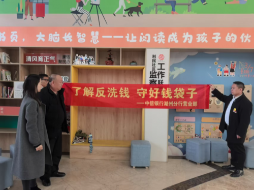 为深入贯彻落实反洗钱工作的相关要求,切实提升社会公众的金融风险防范意识,筑牢金融安全防线,守护人民群众的“钱袋子”,中信银行湖州分行营业部于近期创新宣传形式,将反洗钱知识送进城市书房,组织开展“反洗钱·守好钱袋子”主题宣传活动,以群众喜闻乐见的方式融入公共文化空间,取得了良好的社会反响和宣传成效。