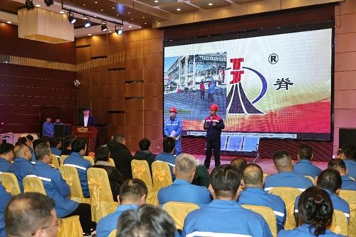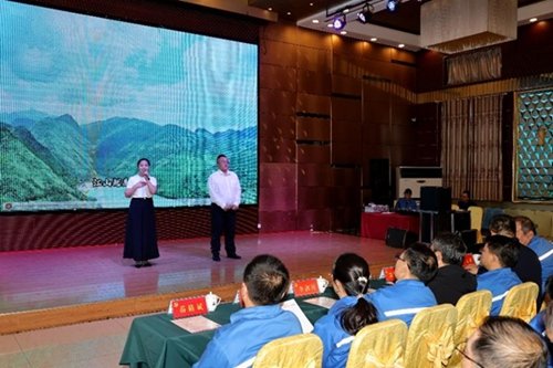 天脊集团词作者将《爱青山爱绿水》这一洗脑神曲结合天脊实际进行了歌词改编,让与会者听见青山绿水里的天脊,看到天脊里的青山绿水。
