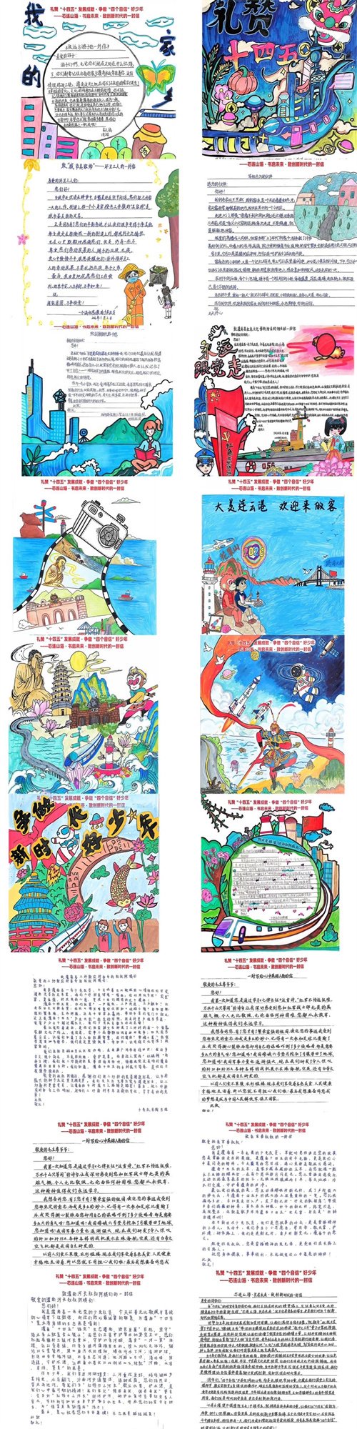 近日,第二十一届全省少年儿童书信文化活动连云港赛区赛事中,灌南县扬州路实验小学的学生创作阶段圆满结束。同学们在“精彩十四五奋进新港城”系列视频中聆听各县区书记的发展讲述,以“礼赞‘十四五’发展成就·争做‘四个自信’好少年”为主题,以“芯连山海·书启未来·致创新时代的一封信”为副标题,将港城各县区发展成就与身边平凡善举融入创作,用童真笔触勾勒发展图景,用真挚文字抒发家国情怀,精心打磨的绘画、书信类作品共计286份,即将踏上参评征程,全校师生共同期待佳绩。