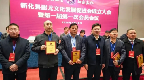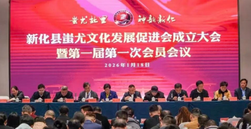 ——新化县蚩尤文化发展促进会正式启航 2026年1月18日,新化蚩尤华美大酒店内旌旗映礼,雅乐和鸣,新化县蚩尤文化发展促进会成立大会暨第一届第一次会员会议在此隆重举行。这不是一场普通的社团集结,而是一次跨越千年的文化邀约,是“蚩尤故里”新化对中华文明多元基因的深情守望,更是地方文化与时代发展同频共振的生动实践。当各界代表共同见证促进会揭牌的那一刻,沉睡于梅山大地的蚩尤文脉,正式迎来系统性传承、创新性发展的全新纪元。