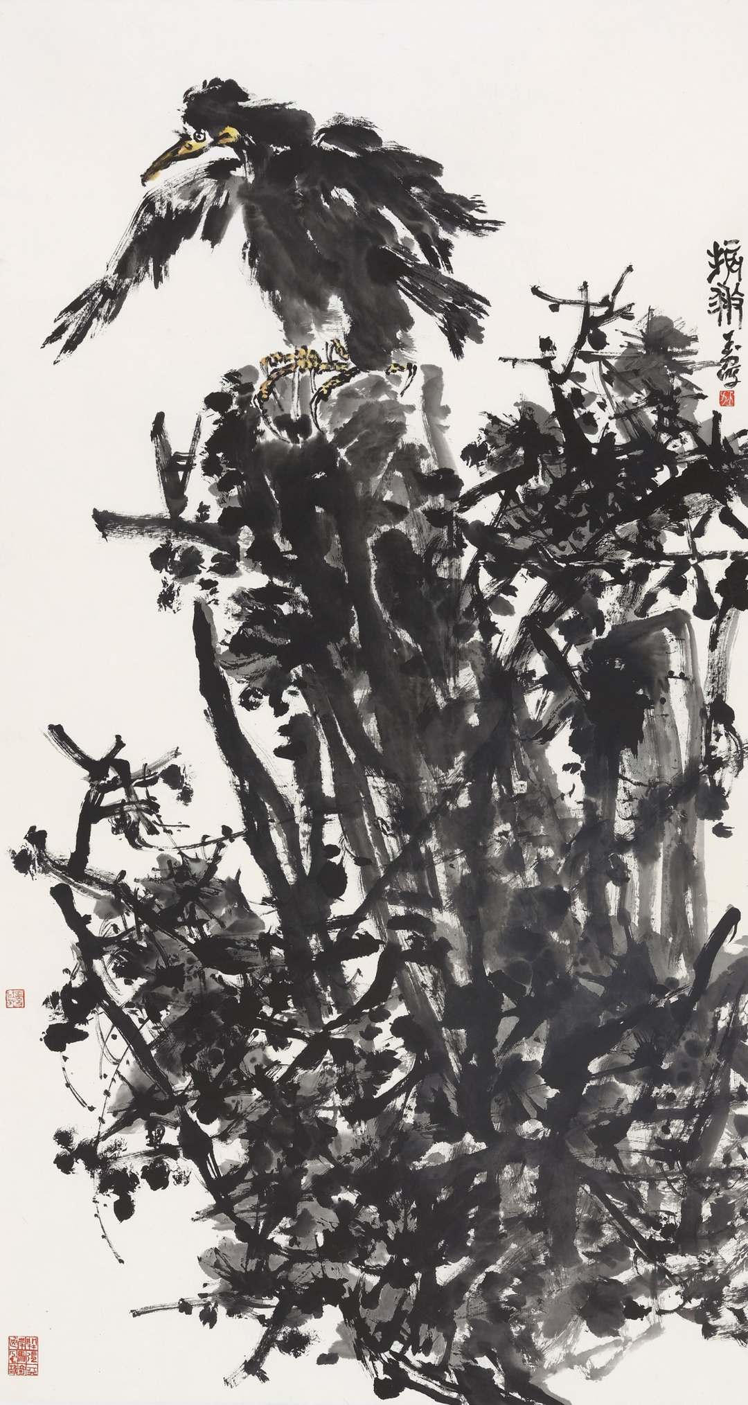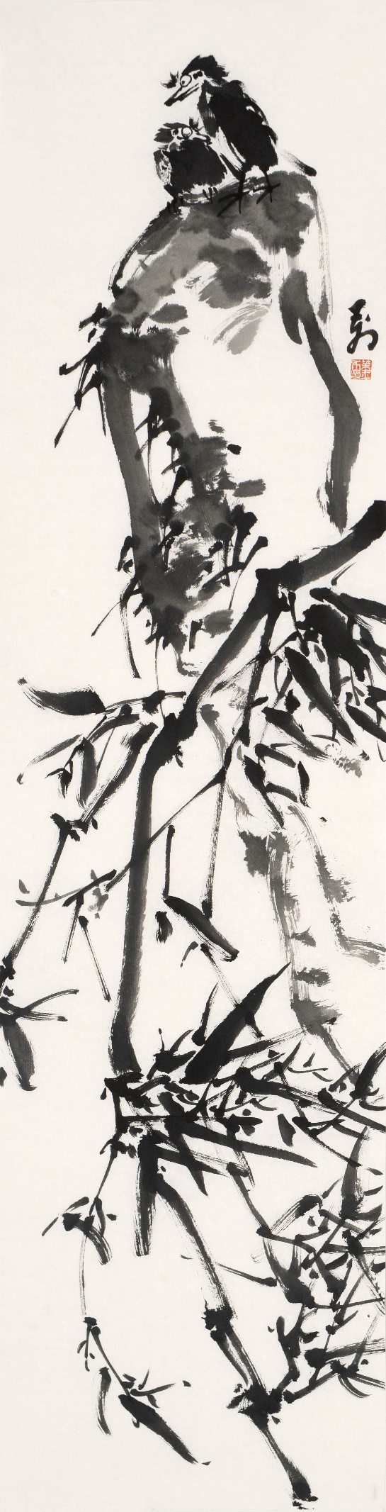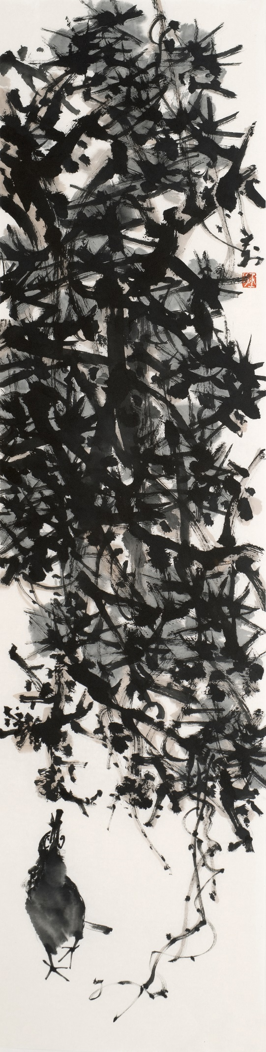 ![]() 《寒林独禽》138×34cm