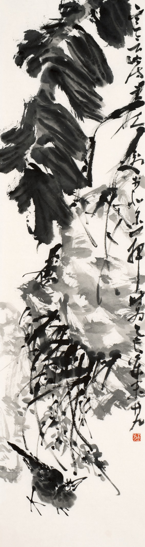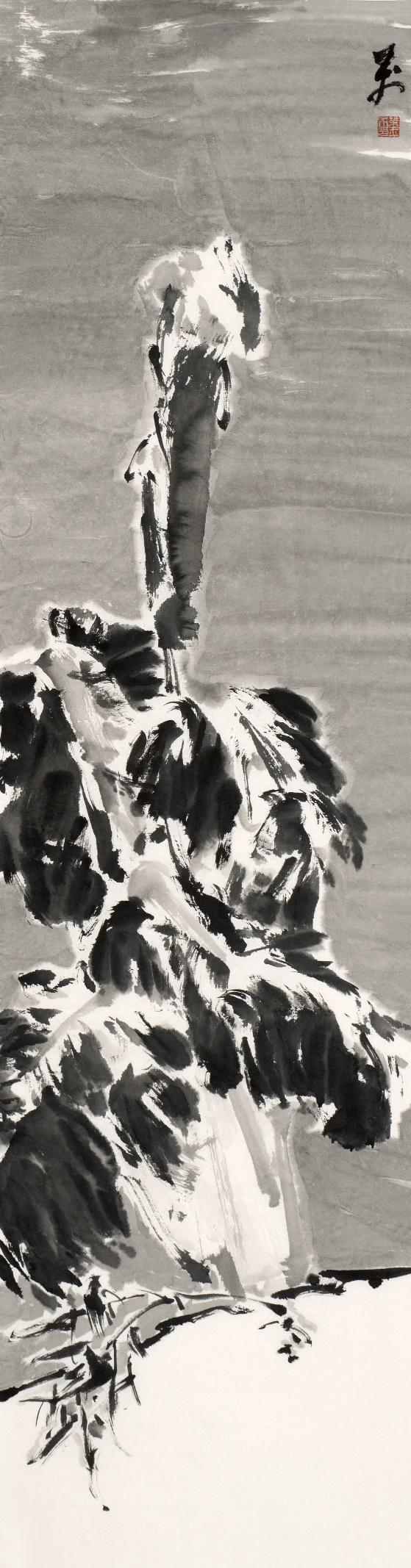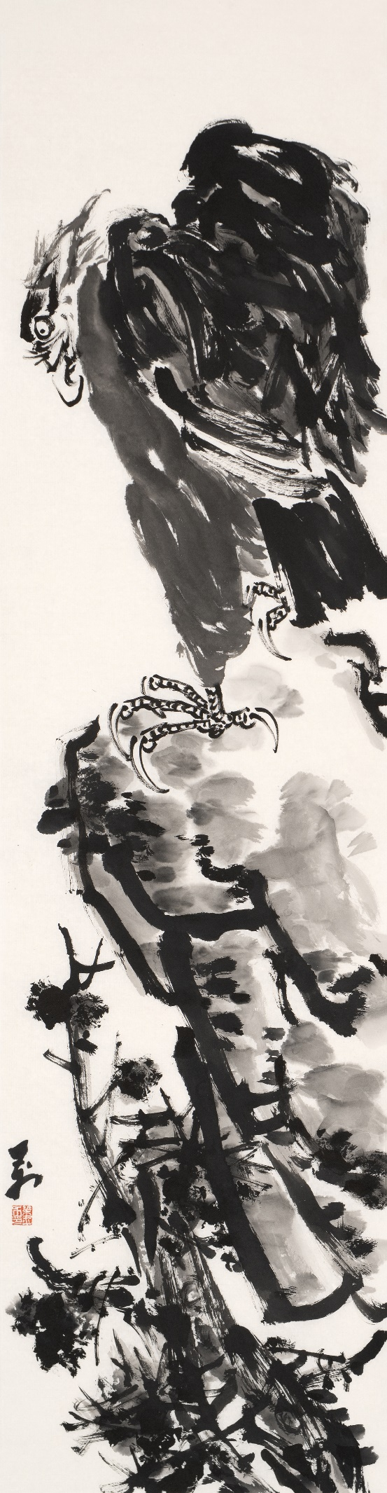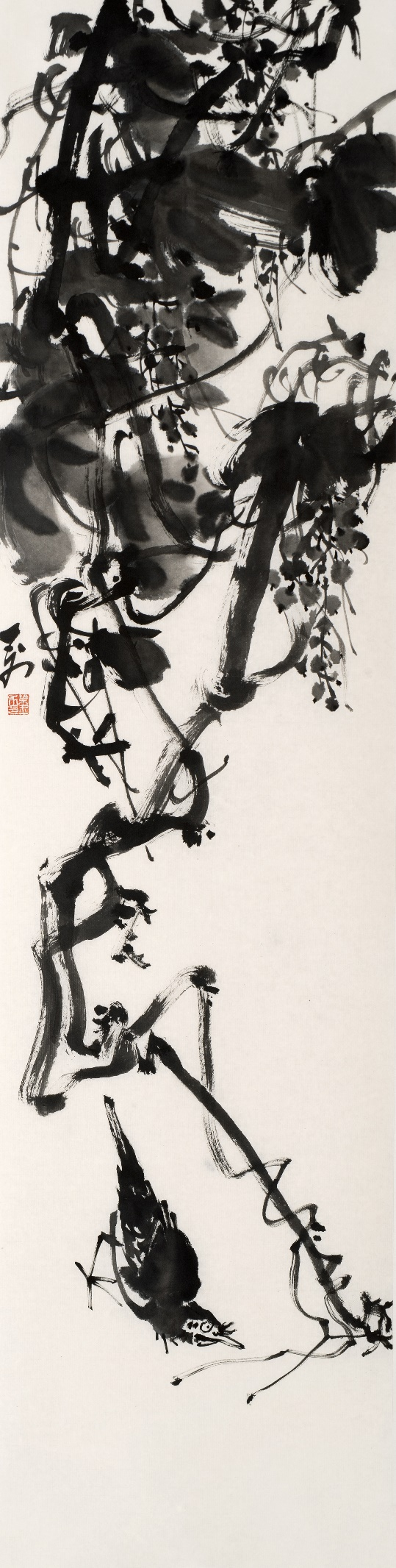 ![]() 《寒林独禽》138×34cm