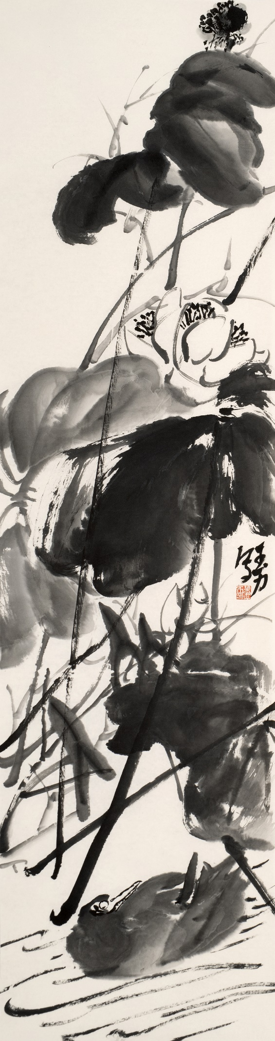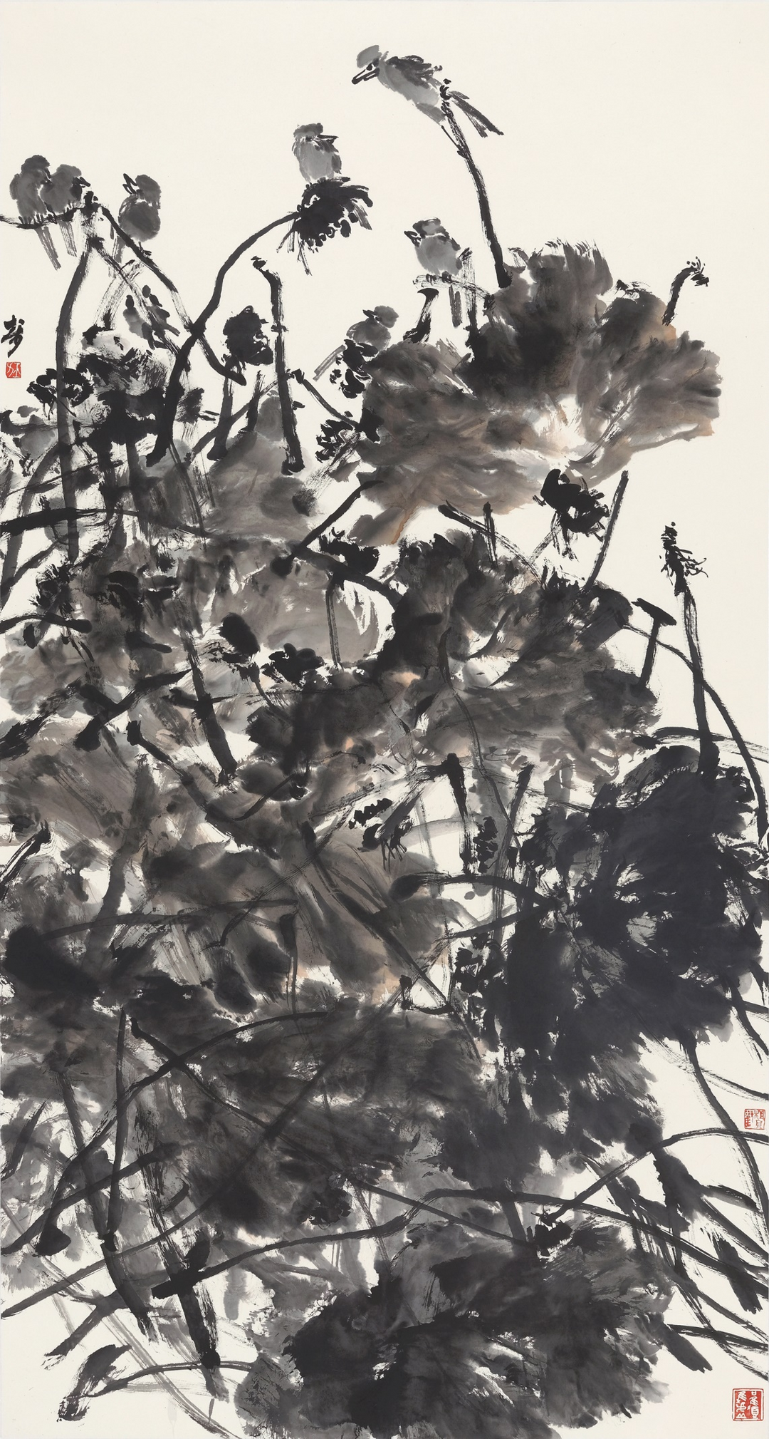 ![]() 《荷风翠影》138×34cm