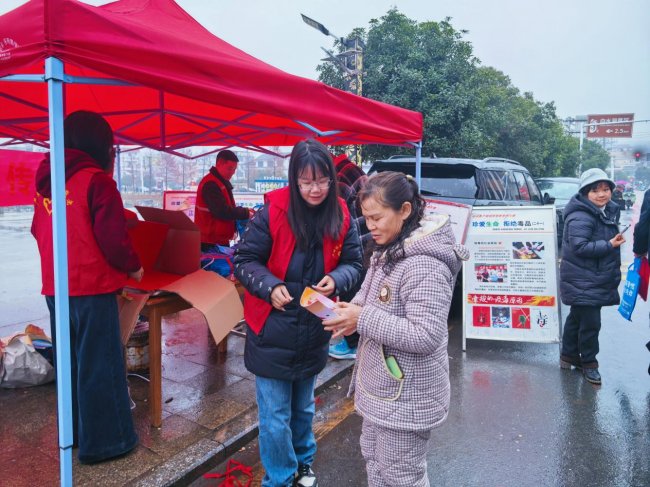 (志愿者正在向群众讲解新型毒品的种类及危害) 此次禁毒普法宣传活动紧密结合节后复工复产实际,精准聚焦重点人群、重点场所,靶向发力、精准宣传,有效提升了群众的识毒、防毒、拒毒能力和法治意识,进一步织密了基层禁毒防护网,切实将禁毒防线筑牢在基层一线,为辖区复工复产和群众平安生活保驾护航。(吴迎新) |
