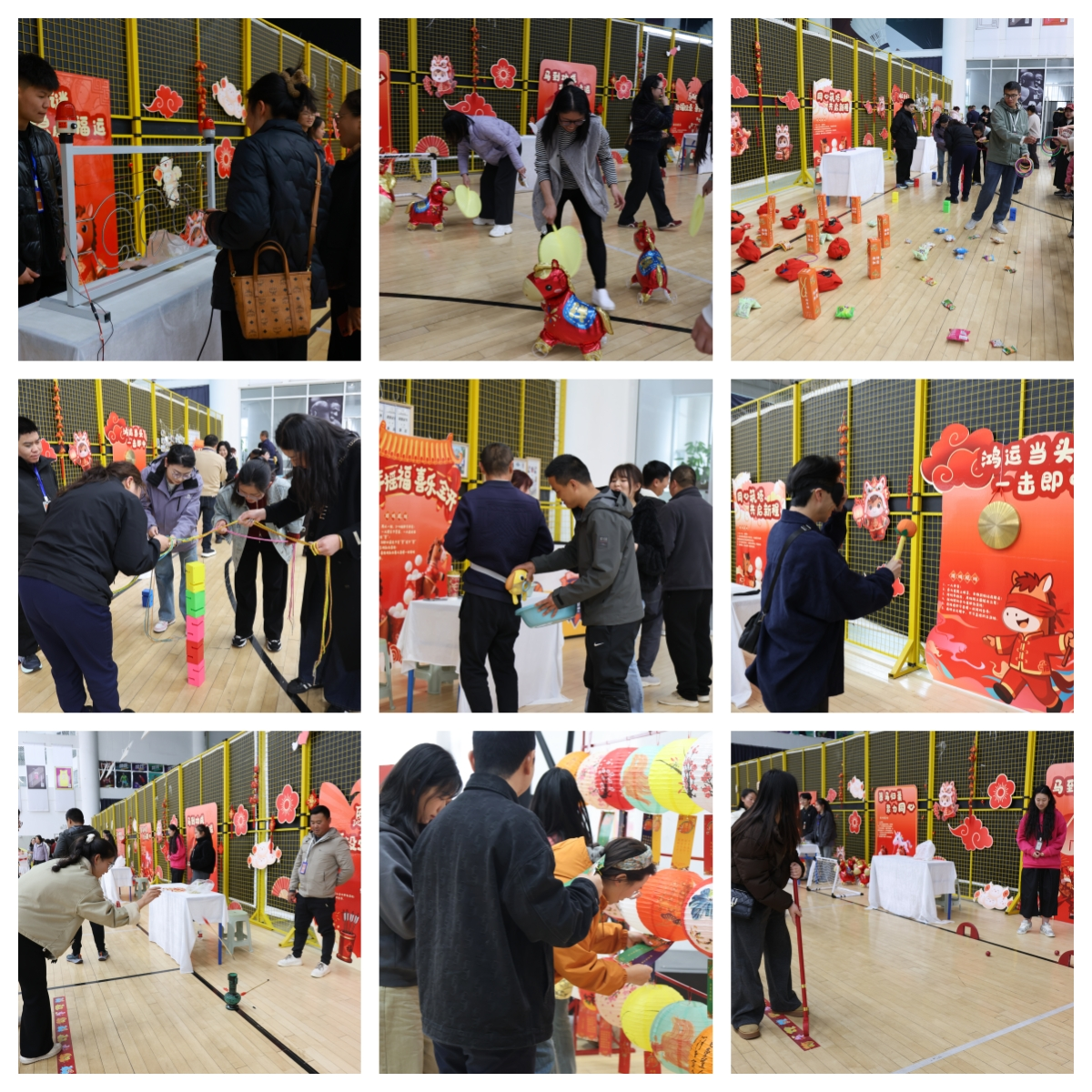 位于篮球场中部的游园游戏区人气最旺,9个互动项目让职工们玩得不亦乐乎——