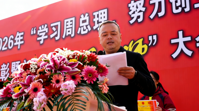 海棠依旧,风范千秋;伟绩长存,光耀春秋。今年3月5日是周恩来总理诞辰128周年纪念日,为传承伟人精神、勇担育人使命,表彰“学习周总理,努力创三好”活动中涌现的先进典型,同时凝聚初三师生迎战中考的磅礴力量,激发备考热情,3月8日下午,淮安市文通中学举行2026年“学习周总理,努力创三好”总结表彰暨初三中考百日誓师大会。本次大会由校团委委员潘海波老师主持。