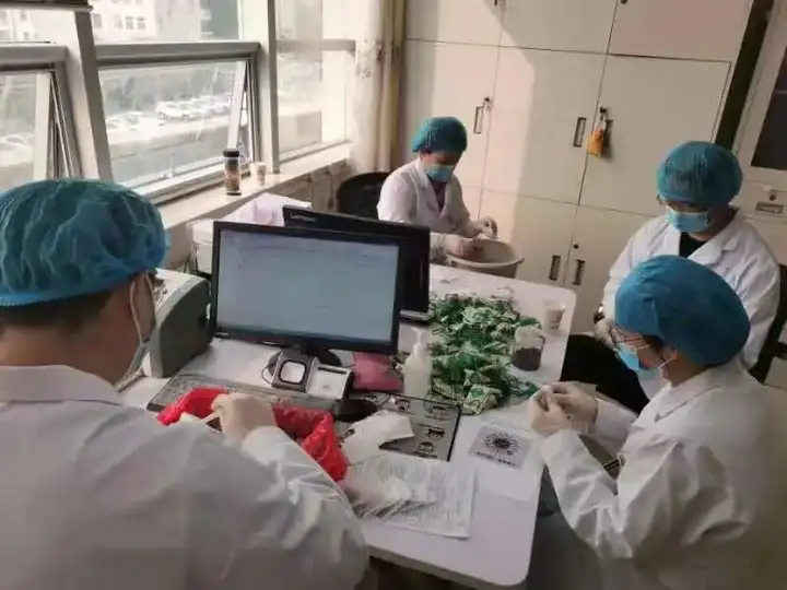 “五月五,是端阳。插艾叶,挂香囊。五彩线,手腕绑。吃粽子,沾白糖。龙舟下水喜洋洋。”为弘扬中医药传统文化,普及中医药知识,让更多百姓认识、了解中医药,6月2日,我院满意服务运管中心联合中医科充分发挥中医药特色优势,向门诊和住院患者送出了2000余个自制中药香囊,表达了医院对患者的浓浓节日祝福。 我院中医科,医护人员们利用休息时间,摆放散发着浓烈药香的细细药粉、药勺、药包和绣着平安福的香袋,根据专门的药方,严格按照比例将茅苍术、香白芷、广藿香、佩兰、石菖蒲等11味中药混合在一起,用小勺装入辅料包中,然后缠紧包口,放入精致的香囊中。大家有条不紊、操作熟练,一个个饱满精致的中药香囊很快就完成了。此次制作的中药香囊,主要有芳香化浊、抗菌消炎、提神醒脑等功效,对新冠病毒也有一定的预防作用。 医护人员将亲手制作的“祝福香囊”递到患者手中,并为患者送去了最诚挚的节日祝福。