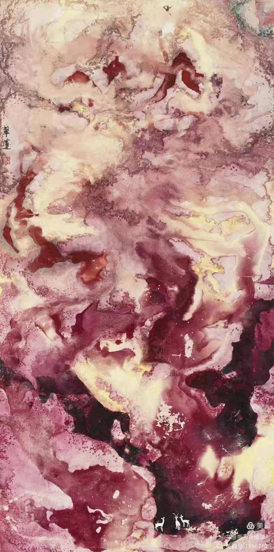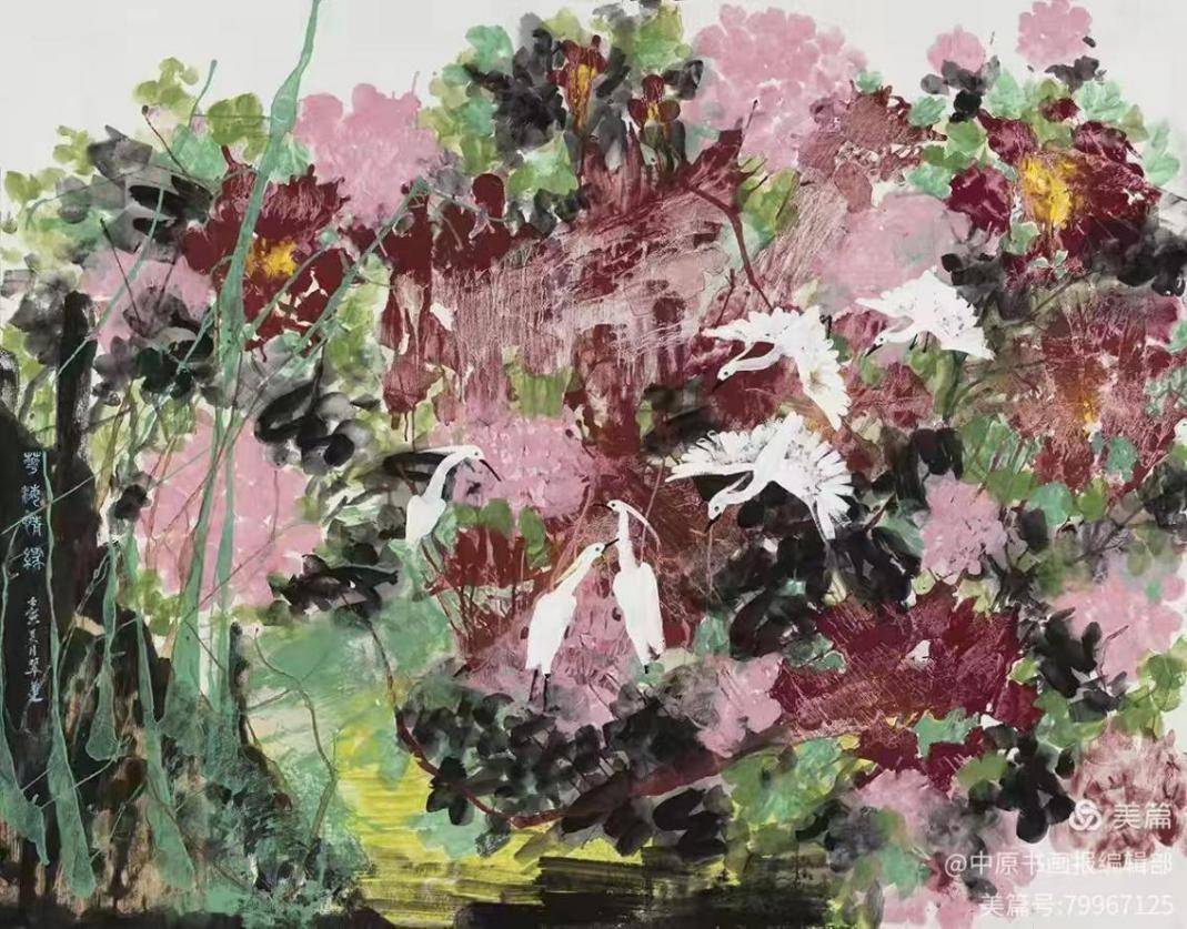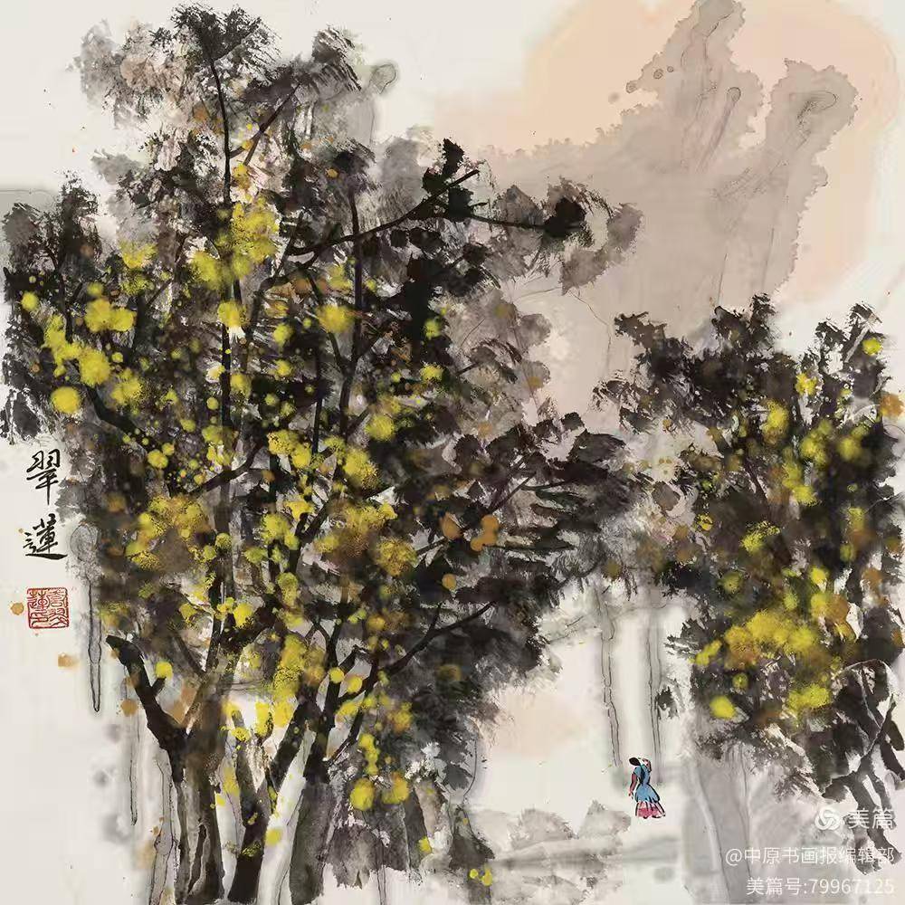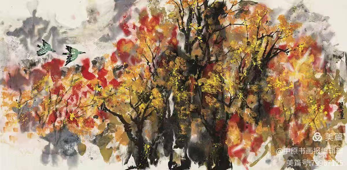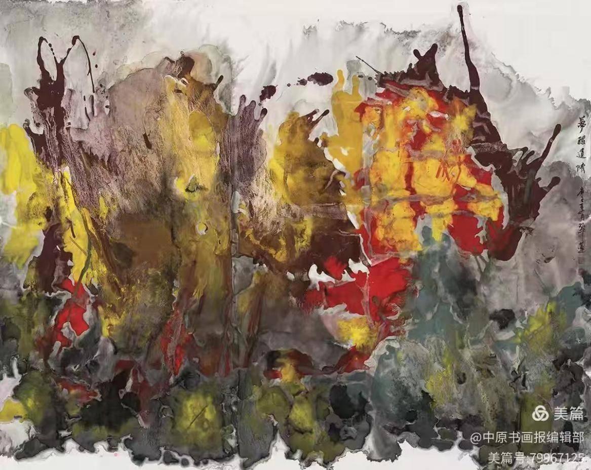 秋色如歌136×68cm 墨彩风华与世纪新象 ——深度解读乔翠莲新意象艺术的美学世界 在当代世界艺术的宏大版图中,各种流派与主义纷呈,而乔翠莲以其独树一帜的“新意象艺术”脱颖而出,成为这一领域中极具代表性的开创者。这不仅仅是一种绘画风格的革新,更是一场关于艺术精神内核的深刻探索。乔翠莲的新意象艺术,在表现形式上与世界当代艺术接轨,但在精神深处,却与中原文化的博大精深有着千丝万缕的联系。中原文化那种厚重的包容性、不断的自我超越品格,与乔翠莲艺术中强烈的探索性与实验性形成了精神上的互通。两者相互启发,相得益彰,共同构筑了一种既有东方底蕴又具国际视野的艺术景观。