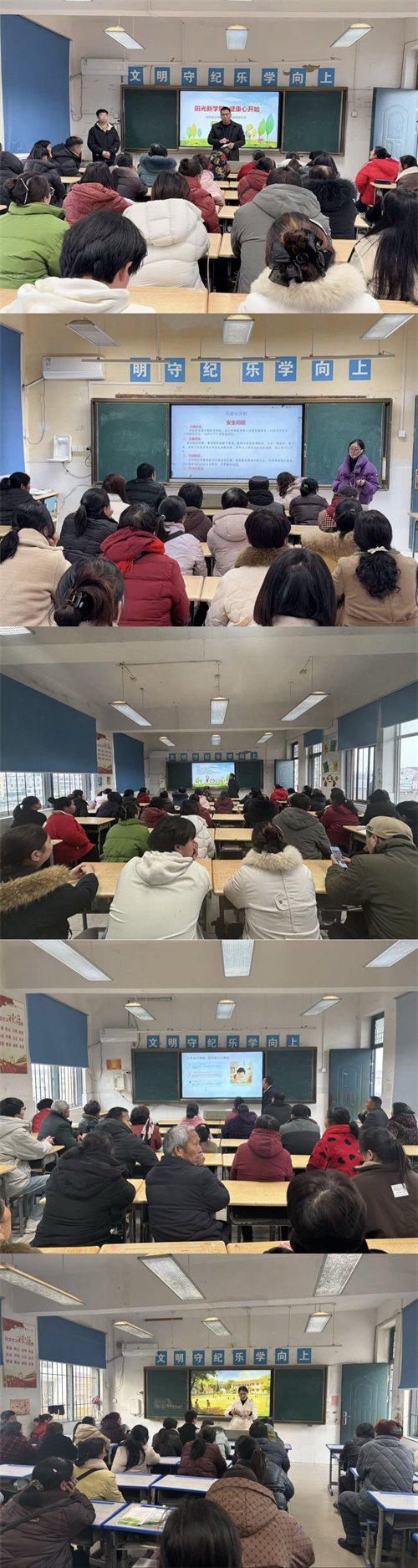 各班主任紧扣心理健康、手机管理、安全教育三大核心开展宣讲:通过鲜活案例引导家长关注孩子情绪变化,学会倾听与共情,守护学生心灵健康;细致解读手机管理规范,倡导科学管控电子产品使用,防范网络沉迷与视力下降;围绕交通安全、防溺水、校园活动安全等要点,提醒家长切实履行监护责任,织密安全防护网。科任老师立足学科教学实际,与家长分享学习习惯培养、课堂效率提升的实用策略,帮助家长精准助力孩子学业进步。