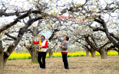 步入梨园,虬枝缀满如雪梨花,层层叠叠、绵延成海,清风拂过,花香四溢。游客漫步花间小径,赏花拍照,尽享春日美好,勾勒出人与自然相融的和谐画卷,也展现出宁陵农文旅融合发展的生动实践。花期里,当地十万余名“点花人”穿梭花海人工授粉,以辛勤劳作孕育秋收希望,成为梨园中别样的动人风景。
