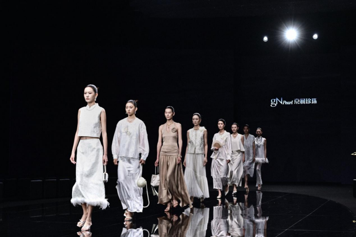 二、珠宝妆品,双线布局 会上,珠宝板块以“来自大海的珍珠之美”为主题,三大品牌矩阵同步亮相:蔻润珍珠主打轻潮设计与高性价比;GN PEARL兼顾经典美学与日常实用;GN PEARL定位顶级高奢。 妆品线以“珍珠汉方、养颜国粹”为理念,推出纯珍珠粉、珍珠人参矜贵蜜养、冬虫夏草奢养、黑灵芝抗皱及男士珍珠石斛等系列。