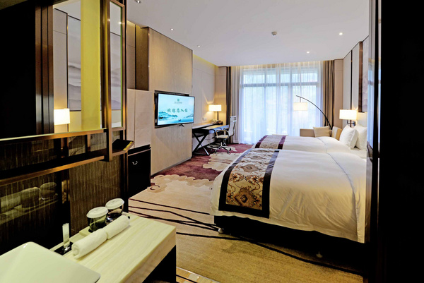 酒店整体设计萃取当地中国传统龙文化元素融合现代简欧风格,彰显出古典而时尚的文化魅力。酒店拥有各类客房153间(套),设有特色中、西餐厅,有600多平方米的多功能厅和大小会议室5间,配备了高清多媒体投影仪、LED显示屏等先进设备,可同时容纳500多人用餐,满足各类宴会、会务需求。此外,酒店还设有网球场、健身房、棋牌及洗浴中心等康乐项目,为宾客提供轻松愉悦的休闲环境。