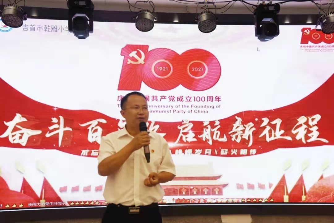 时代造就英雄。百年以来,都离不开党员干部在各自平凡的岗位上担当作为、知行合一。向帮松校长以党史学习教育为契机,带头上好“党史”主题教育思政课,向师生宣讲了《与中国共产党密不可分的几只船》的党史故事。通过开展以“党建带队建”模式,深入落实党员“一联一”、党员“一帮一”的工作。即是一个党员联系一个中队,一名党员教师至少结对帮扶一名特定学生、单亲学生、留守儿童或困难少先队员。开校一年来,学校共开展了4次团体心理辅导,进行个别心理疏导120余次。学校精心策划了一系列的主题教育活动,组织开展每两周1次的红色队课、思政教研活动4次、推送学生线上诵读红色故事8期、开展意识形态专题党课3次、“学史明理,学史增信,学史崇德,学史力行”微宣讲20余次等,潜移默化渗透爱国主义教育。于是,一学期下来,先后荣获全市教育质量综合评价“质量效益先进单位”;湘西州“书香校园”;吉首市“教体系统先进基层党组织”;吉首市“教体系统先进基层学校党建示范点”;在吉首市教体局组织的“党史铭记心间,喜迎建党百年”和“我们是共产主义接班人”主题征文活动中被评为优秀组织奖;在吉首市教体局组织的“三独”比赛中共有24名学生获奖,学校荣获优秀组织奖;文艺节目《天地人》获湘西州非遗文化优秀节目奖;全校有2名教师在吉首市现场教学竞赛中获一、二等奖;7支团队27名教师在湖南省集体备课大赛中获奖;3名教师“一师一优课”竞赛获州级奖励;8名教师论文在全国省州市获奖;1人获省教研先进个人光荣称号;2人获湘西州“阅读名师”光荣称号;1人获湘西州“优秀少先队辅导员”光荣称号;10人在各级竞赛中获优秀指导教师奖;学生陈芷阳获湖南省“新时代好少年”光荣称号;学生胡智巍获湘西州“优秀少先队员”光荣称号;29名学生在其他类竞赛中获市级以上奖励;向帮松校长也因此荣膺第17届全国创新名校名师“十佳校长”……难怪湘西人把“乾雅”称为湘西梦的领地。
