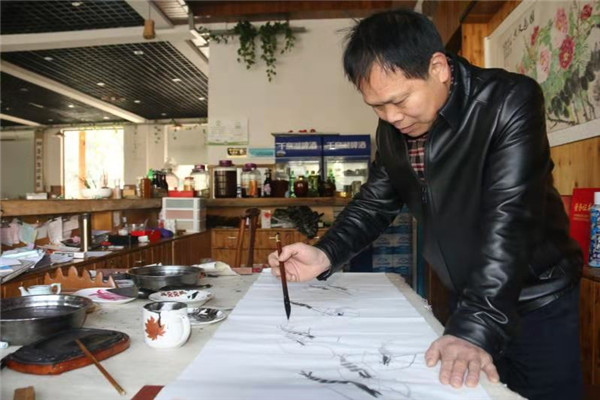 看到商机的陶曹伟于2018年在原来烧成灰烬的厂房基础上建起了集住宿、餐饮、娱乐、休闲为一体的民宿,取名“九松阁”。民宿后面是一座高山,放眼望去九棵松树高大挺拔,其中一棵虽已断了半截,但松针仍然绿意浓浓,枫树叶红、竹林摇曳,层林尽染,如一幅彩色山水画卷。山脚与民宿之间隔着一条“后门溪”,溪水清澈,几群水鸭游弋期间。朝着陶村方向,站在民宿的四楼阳台上,整个陶村尽收眼底,往右望去,延福塔巍然挺立……。 “九松阁”民宿前的公路是武义县城到宣平柳城一带、牛头山的必经之路,加上村里的新农村建设,延福寺的修缮,前来旅游的游客日益增多,20个房间每天基本客满。而民宿里所用的蔬菜、猪肉、鱼、豆制品等食材都是从当地或附近村民手中购买。 采访中,村里一位姓陶的75岁村民说,平时田间地头种的菜,自己根本吃不完,但是要说拿到市场去卖又显得数量不多,也麻烦,一部分就老掉,烂掉不能吃了,很是可惜。现在拿到陶曹伟这里来,他都会以不低于市场价的价格给买去,使一些村民不仅多得了一些收入,也不造成浪费,大家心里也高兴。 经过3年时间的努力,“九松阁”成为了颇有名气的民宿,除了武义及周边县市的顾客,也吸引了不少上海、杭州、宁波等地的顾客前来住宿、就餐、休闲,有的一住就是十天、半月甚至个把月时间。隔三差五有同学会、婚庆等在这里举行。陶曹伟计划明年进一步扩大民宿规模,使民宿房间达到40间以上。现“九松阁”民宿已成为武义县餐饮行业协会理事单位,在武义县首届农家乐民宿中式烹调师技能比武大奖赛中还获得了“特色菜点奖”。涅槃般获得重生的陶曹伟,工作之余,便写写毛笔字,学画画,喝喝茶,与妻子到民宿后的山上溜达溜达,生活过得很是惬意。(王东方) |