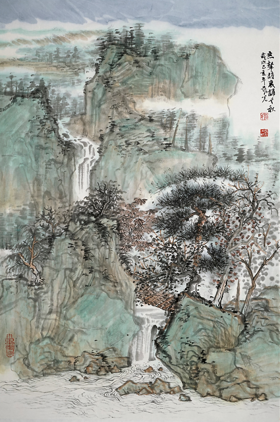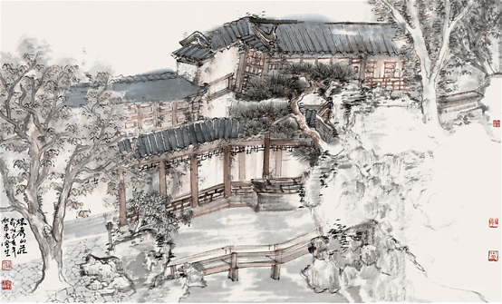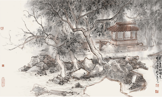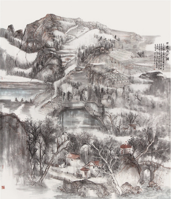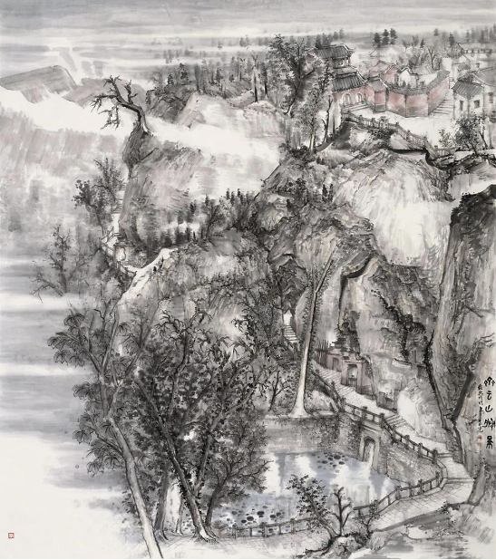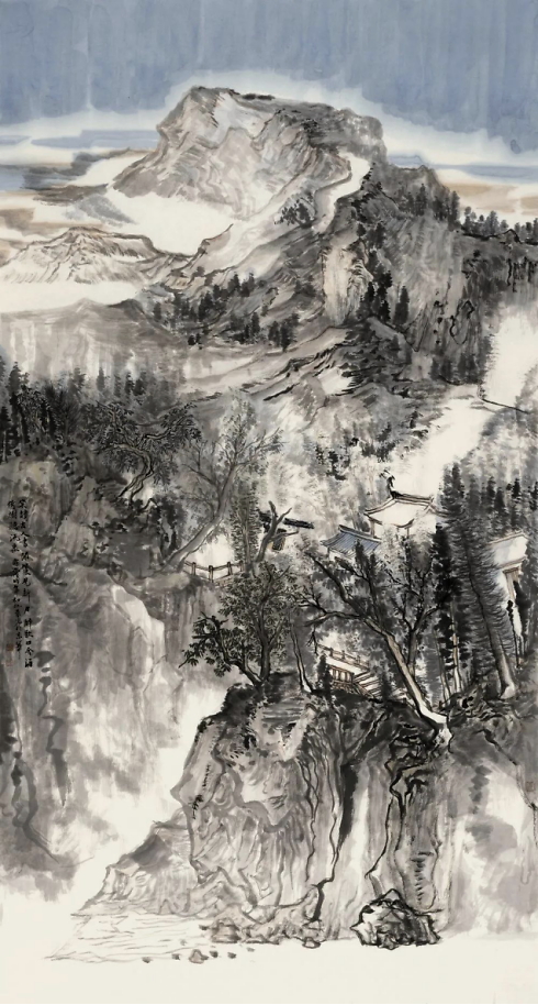晨光兄也知有不足,乃负笈北来,列何加林师门下,深自涵养。何师门下,皆重写生,山水四时之景不同,朝暮阴晴各异,一山而兼数十百山之意态,不去实地写生,断难参造化,而在天地自然中冶炼案头文章,又非襟怀开阔,胸存沟壑者难能也。晨光兄结缘山水,眼前自然有万里河岳纵横,我艳羡他的脚踪飘忽,瞻之在校园,忽焉又至化外,餐云吐霞,以天地为师,神遇而迹化,又得何师笔墨仙气,山东豪强居然开始文雅清透,翩翩灵动起来。他本来就面黑,因长期作汗漫之游,间关南北,慢慢烟云供养所致,于是真的晒成凛凛一条黑大汉,这黑厮参悟了许多何师的南宗笔法与墨法之后,收敛了北宗的雄强繁茂,偶在画面上,略逞文秀。晨光兄有山东豪客的坦荡,不拘小节,却绝非粗蛮一路,如今笔墨心思兼南北之长,粗中有细,细中有粗,切换从容,真可以玩味。以晨光兄其人,作如许之山水,是人画合一的又一例证。