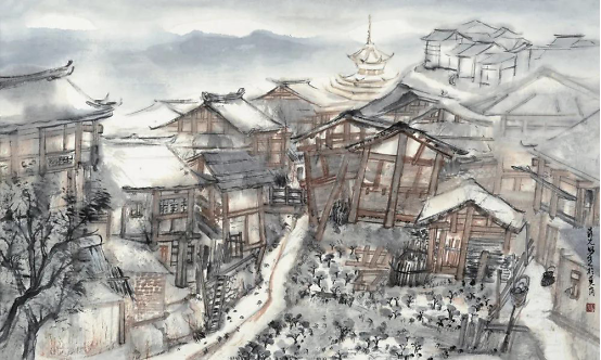 晨光兄画山水,也当如是观。 最初见晨光兄的山水,是刚去艺研院做同学时。那时的晨光兄,画面尚有鸿濛未开,天地混沌之处,然元气淋漓,是季子正年少,匹马黑貂裘,相逢意气,有为君上高楼饮的气概。年轻而气盛,笔墨便不暇顾,许多需经营之处,全凭气使,先声夺人。晨光兄笔墨纵横处,每每令我想到黑旋风抡动双板斧,闹江州也好,劫法场也好,目中全是人,目中也无人,凛凛一条黑大汉,只就人丛中排头价砍将去,有搅天翻地的破坏力。这种气力,作用于画面,虽触目有生涩处,然而生涩处便有处处生机。