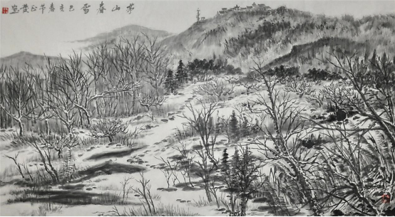 二 、山水逍遥 往圣先哲有“观物取象”“立象以尽意”这一真谛,“观物”也近似于艺术家写生,约略为“外师造化”,具体指对外界物象的直接观察、感受。“取象”与“尽意”是“观物”的目的,即提炼加工,创造出“得心源”的意象。在艺术创作中,此“意象”是指反映艺术家审美关照,体现艺术家审美理想的终极关怀。 我们日日走过的土坡或者山丘,春山淡怡,夏山如滴,秋山如妆,冬山如睡。古往今来,诗词歌赋,水墨丹青,代有佳作,传情达意,盛事连连。艺术家朱正发先生笔下的山水,有春夏秋冬之意趣与大美,亦有“俯仰往还,远近取与”之诗画空间的格韵特质。