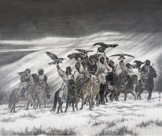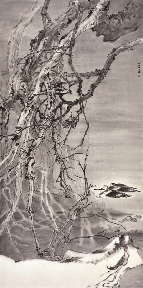 三、生机无限 法国伟大的艺术家罗丹说过,真正的艺术家是在别人司空见惯的事物上发现美。“司空见惯”的事物就艺术创作而言可以理解为取材广泛,取材之广又本源于艺术家对生活有着无限热爱之情。具体指涉艺术创作或者是中国画的艺术创作既可以指人物山水花鸟三大题材,也可以指写意工笔两种创作方式与艺术语言的多元与驾驭。艺术家朱正发就是这样的人,他的中国画创作涉及三大题材,工笔写意两种技法语言都能技道合一的完成自己的艺术创作。这是一个优秀画家的天才般的修为与生机展现,纵观历代丹青圣手无不如此。如现代艺术大师黄宾虹先生,白石老人,大千居士,傅抱石先生等皆能工写兼善,题材广泛,不拘于一隅。