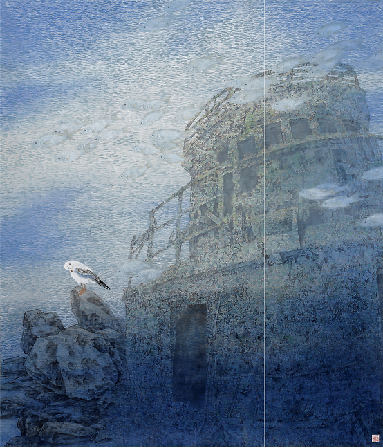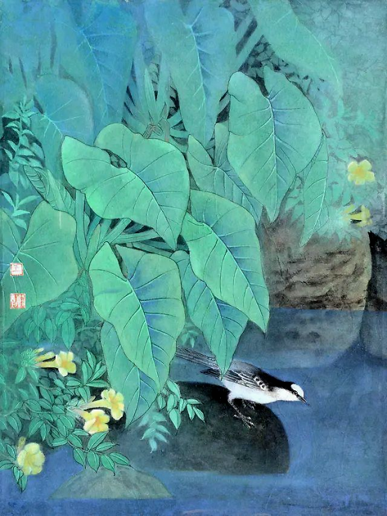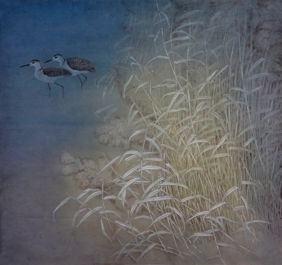 认识开刚先生已逾二十载,二十年前,我家书房里便挂有他的一幅传统工笔画作《梧桐·鹌鹑》,画面很满,青绿满目,几只鹌鹑“穿行”林间,很是生意盎然。但仔细审读,这幅作品,仍然是兼工带写,用色、构图中规中矩;二十年后,再来观赏王开刚的工笔重彩之作,恍然大悟:画乡萧县给了他扎实的基本功,线条、水墨、写意、传神等等,而走出萧县后的他乡水土滋润,那些当代工笔书画大家们的言传身教,却加速了王开刚艺术创作的“与时俱进”,他由传统工笔画步入了工笔重彩的崭新天地。