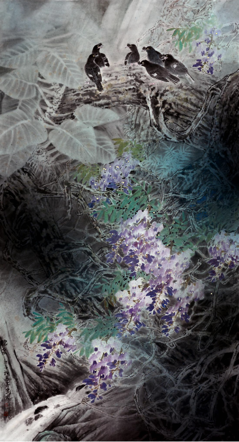 2005年,王开刚先后深造于北京书画院高研班、中国艺术研究院研究生院。先后师从杨瑞芬、蒋采苹、刘新华、郭继英等先生,现为首都师范大学郭继英重彩工作室学员。这方“学院派”的水土,开阔了王开刚的视野,解决了困扰他多年的道路选择难题:工笔?写意?兼工带写?他从诸位大家身上学到了一些艺术的真谛:艺术同源,无所谓孰高孰低,大写意和工笔画也不是水火不容,而应是水溶交融,于是,他笔下的题材更加丰富,技法运用更加多样,工笔重彩的同时,也不排斥大写意的泼墨精神渲染,而且在专攻工笔花鸟画的同时,近年在小写意花鸟上也渐入佳境,尤其小写紫藤再配以工笔禽鸟、小动物、鱼类等,更是让人称绝。