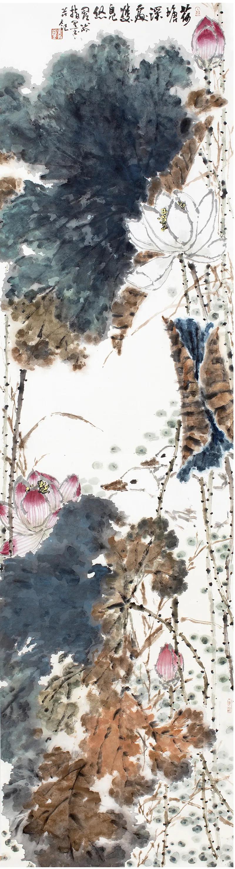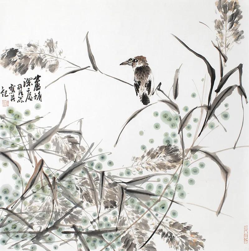 得泾水滋养,王星的大写意花鸟画师承一代宗师吴昌硕,在张天奇先生指导下,以观照自然的眼光,徜徉在中国花鸟画的世界里。1978年,王星参加苏州地区书画学习班,又得到吴门花鸟画名家张辛稼先生指点,画艺益进。他的画构图立意气韵生动,用笔无论挑、剔、闪、趯、或染、擦、点、厾,气足神备。枝叶勾丝,斫线硬朗潇洒,设色沉着娇丽,墨色亦佳。“一花半叶,皆为万物生意;翎毛游鳞,则与自然俱化”,观者欣悦充盈。 王星的指画得其师真传,不但有毛笔的韵致,且更显得稳实,色泽厚重,具苍茫之感,让人爱不择手。 “好鸟枝头亦朋友,落花水面总关情”。王星的大写意花鸟画正是艺术形式和精神内核的统一,所谓逸而内敛,气脉和畅,意韵卓荦,良有以也。 夏国贤 2021年3月29日 展出作品(部分)