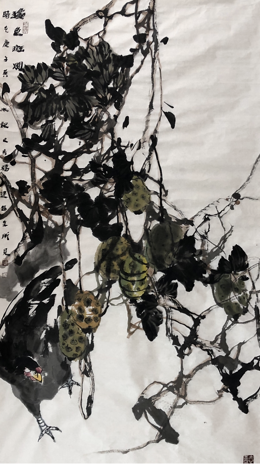 英水先生大气,画面也气宇轩昂。他的作品,立足于对生活的审美观照,寄寓着他对生活的“大爱”,体现出对中国传统绘画语言的领悟。精神,是一种很玄的东西,但又是确确实实能够捕捉到的。精神层面透露出来的大气,是高层次的。 英水先生表示,“齐白石之所以成为巨匠,是因为改变了以前文人画风的形式,雅俗共赏接地气儿;潘天寿则进一步发展了文人画,为文人画增加了“一味霸悍’的视觉冲击力。我们这代画家,也应该在传承和发展国画方面做出努力。”
