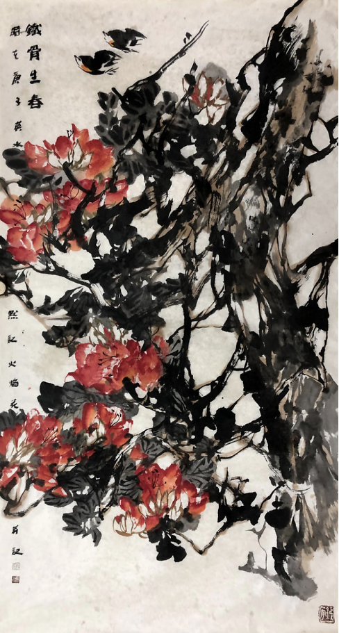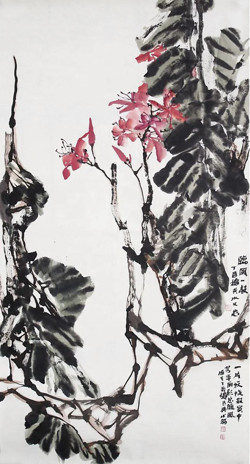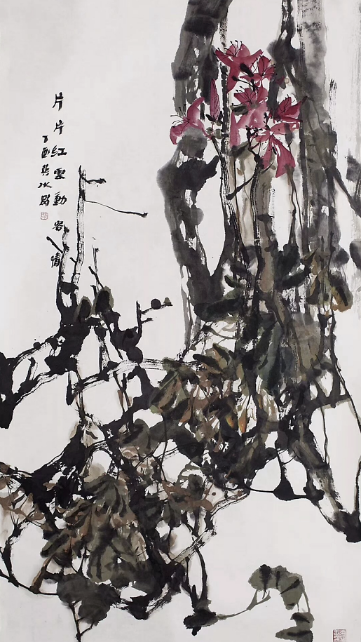 大气之美|赵英水大写意花鸟画 赵英水先生“画风大气”。这四个字像是时下画评里的万能用语。但用在赵英水先生身上,并不是套话,而是恰如其分的。首先,他擅长的是国画大写意,在构图布局和笔墨形式上本来就是大开大合、酣畅淋漓,追求的是一种“笔墨未到气已吞”的气势。