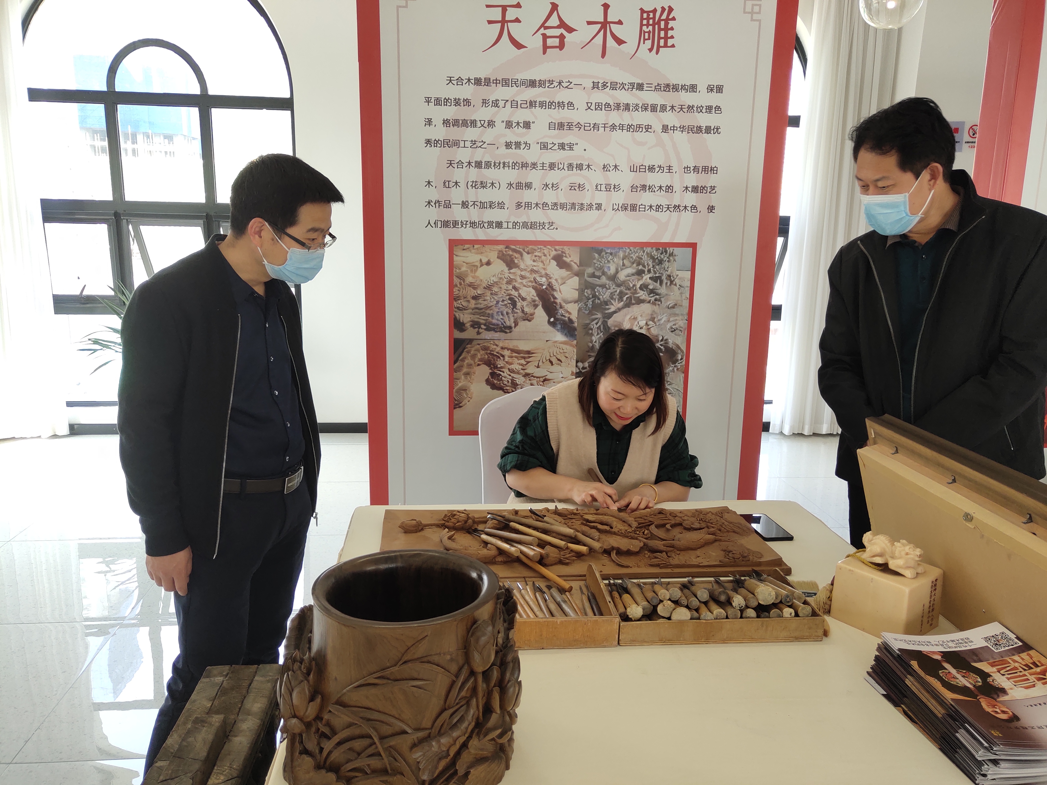 ![]() 东阳木雕是中国民间雕刻艺术之一,因产于浙江东阳而得名,“东阳木雕”与“青田石雕”“黄杨木雕”并称“浙江三雕”。 北京故宫及苏、杭、皖等地,都有精美的东阳木雕留世。 东阳木雕,是以平面浮雕为主的雕刻艺术。其多层次浮雕、散点透视构图、保留平面的装饰,形成了自己鲜明的特色。又因色泽清淡,保留原木天然纹理色泽,格调高雅,又称“白木雕”,自唐至今已有千余年的历史,是中华民族最优秀的民间工艺之一,被誉为“国之瑰宝”。2006年5月20日,东阳木雕经国务院批准列入第一批国家级非物质文化遗产名录。 东阳木雕的工艺类型有无画雕刻与图稿设计雕刻两类,均注重创意和“绘画性”,具有较高的艺术价值。东阳木雕的题材内容多为历史故事和民间传说,图案装饰丰富而有变化,“满花”中还穿插着内容丰富的雕饰,加人物、山水、花鸟、走兽等。在艺术手法上,东阳木雕以层次高、远、平面分散来处理透视关系并以中国传统绘画的散点透视或鸟瞰式透视为构图特点,它所表现出来的内容可以比西洋浮雕更为丰富,它可以不受“近大远小”“景清”“远景虚”等西洋雕刻与绘画规律的束缚,充分展示画面内容,可谓“画中有画,景中有景”。 东阳木雕的雕刻技法以浮雕为主,结合运用“深镂空雕”“透空雕”“透空双面雕”“半圆雕”“三面雕”、“圆柱雕”“拼斗雕”“阴雕”“树根雕”“彩木镶嵌雕”“镂空贴花雕”等十多种手法。雕工精致洗练、玲珑剔透而不伤整体和牢固。例如“透空双面雕”是一种穿花锯空以后,再进行正反两面雕刻的技法,它图案整体、结构严密、透空透风、坚固耐用,常用于房屋挂廊、门窗、宫灯、屏风、柜架上的雕饰。 形式(技法)决定风格。东阳木雕以构图饱满大气,层次丰富细腻、图像写实传神、做工精细细刻、格调清秀淡雅和实用与欣赏完美结合的艺术风格独具特色,这种艺术风格以东阳木雕的独特的平面浮雕雕刻艺术为前提条件的。 ![]() 中国是一个崇尚雕刻而又十分擅长雕刻的国度,在品种繁多,流派纷呈的数以百余种民间雕刻工艺中,历经千年锤炼的浙江东阳木雕,是各流派中影响最大最负盛名的一种。它以悠久的历史,丰富的品类,生动的神韵,精美的雕饰,精湛的技艺和广泛的表现内容而名扬海内外。它是我们民族的瑰宝,东方文明中一颗璀璨夺目的明珠。它蕴含着中国人民的智慧,融会了中华民族特有的气质和文化素养,它在世界民间雕刻史上也是独树一帜的。 程懂出生于河南省夏邑县李集镇农村。他初中毕业后,不愿再继续上学,一心想学习一门手艺。经过多番考察和筛选,他决定远赴浙江省东阳市学习木雕技艺。程懂经人介绍投靠在当地名师应国晓的门下。应国晓的师父韩朝威师承中国工艺美术大师,中国工艺美术学会木雕艺术专业委员会会长,中国工艺美术学会雕塑专业委员会副会长陆光正,幸运的程懂一入行就投在了木雕界权威大师的门下。 程懂对雕刻有着极高的天分,在应师傅众多的弟子中,很快脱颖而出。他不但能完全掌握师父传授的刀法、工艺,而且善于融会贯通,每件作品都会带给师父意想不到的惊喜。不长时间,程懂成为应师傅的掌门大弟子。 2001年,应师傅率弟子们来到古都西安,在未央区创办了“东阳木雕厂”,程懂被任命为厂长。 西安是目前公认的十三朝古都,是中国最佳旅游目的地,为数众多的古建筑催生了木雕这一传统行业的发展。程懂来到这里,如鱼得水,先后为西安市仿照唐代皇家园林式样重新建造的大唐芙蓉园雕刻门头及古建木雕,为西安市政府做木雕,为大雁塔做木雕,为法门寺做木雕,为黄帝陵制作祈福中华匾额,为西安世园会制作清明上河图大型木雕...... 程懂的木雕作品短短几年间出现在西安等旅游城市的古建筑内,在业界享有良好的声誉。程懂因木雕结识了很多的老板、实业家,他们对程懂的手艺推崇有加。 2011年,程懂生了一场大病,无奈离开师父的木雕厂回家休养。在家一年的休养中,程懂在治疗之余刻苦钻研美术、书法、雕刻类书籍,不断丰富自己的知识,提高自身的文化艺术素养。 “木头不是死的,它的质感,它的纹理,还有它被晒得爆裂的声音,以及散发出的香气都是对世人的一种表白,木雕家使它换了一种形态,继续生存,正如生命长存。”这是一位木雕爱好者的感悟,也是程懂内心的独白。他认为,无论一件作品还是一个人的为人处世,都离不开一个真字。人在世间,做人真,做事真,能立于世。作品求真去虚,自然本真,能与万物融洽和谐,才会迸发出超强的艺术感染力。 2012年,身体恢复健康的程懂又远赴温州深造雕刻技艺,追寻一个雕刻匠人的境界。几年间,他的性格大变,沉稳谦虚,温和内敛。这或许就是最本真的他。 2016年,程懂多方筹借了10万元,在西安市末央区团结村创办了自己的天合木艺厂。 ![]() 一个小厂,一个10人的团队,一个月的正常开支至少在5万元以上。但艰难并没有阻挡住程懂的脚步,他多方联系以前的老客户、老朋友,让更多的人知道他的天合木艺。功夫不负有心人,第二个月刚开始,渭南市桃花源景区就找打他们,把他们景区所有古建筑的木雕活交给天合木艺。接下来,陕西省韩城市史记城也前来下单。一时间,订单纷纷而来,程懂每天和弟子们忙到深夜。 木雕是中华民族代代相传的隗宝,然而近二十年来,人们的生活发生了极
