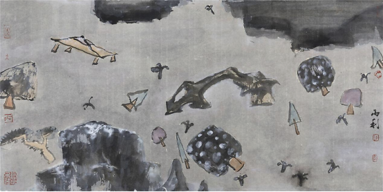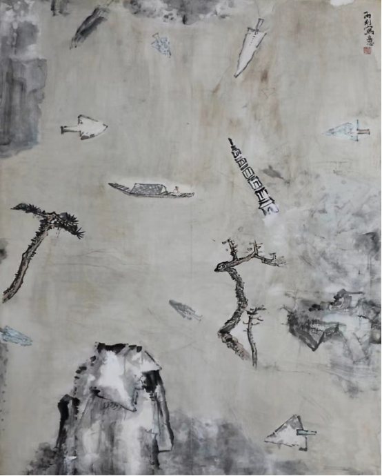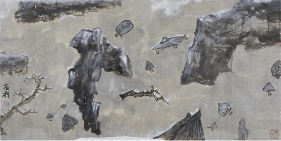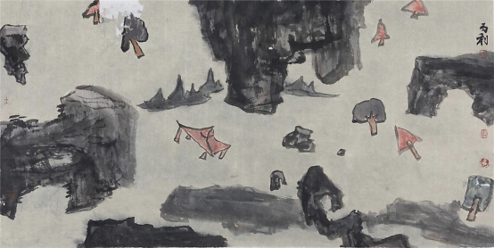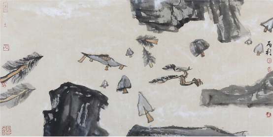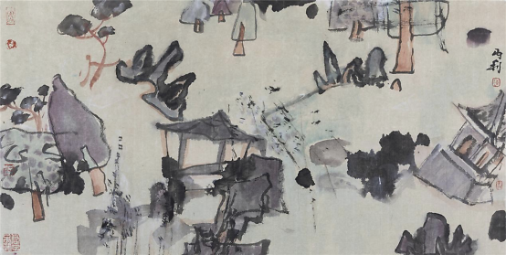 至于解构后的重组自然就打破了原来的“可望、可行、可居、可游”的范式,而是一种“心游”的状态。传统山水画则讲究“三远法”——“高远”“深远”“平远”和散点透视,更显生动灵活,多变多端。这些法则也不是一成不变的,随着时代的发展和艺术的更迭,人们可以在此基础上创造出更得多的经典。